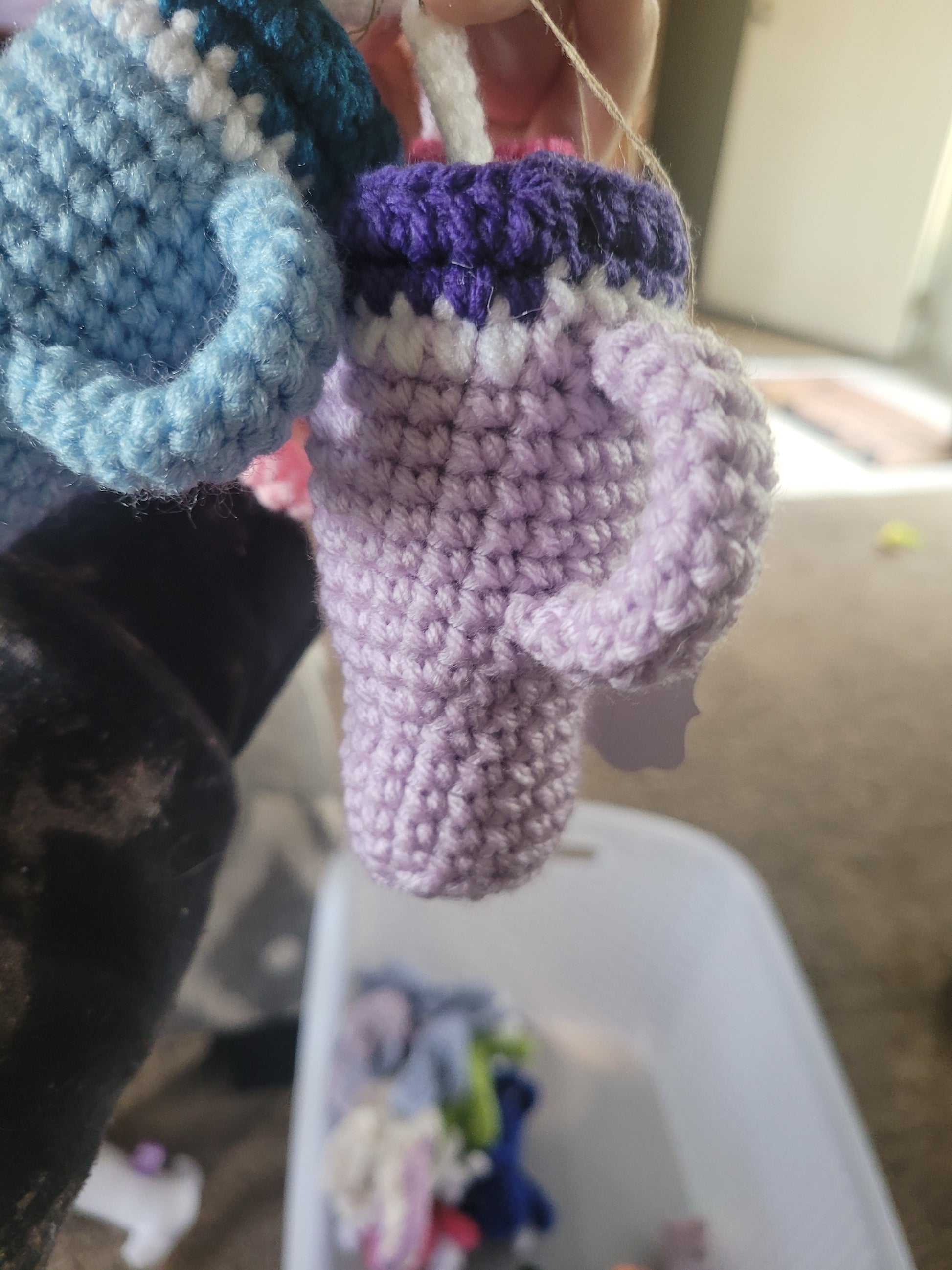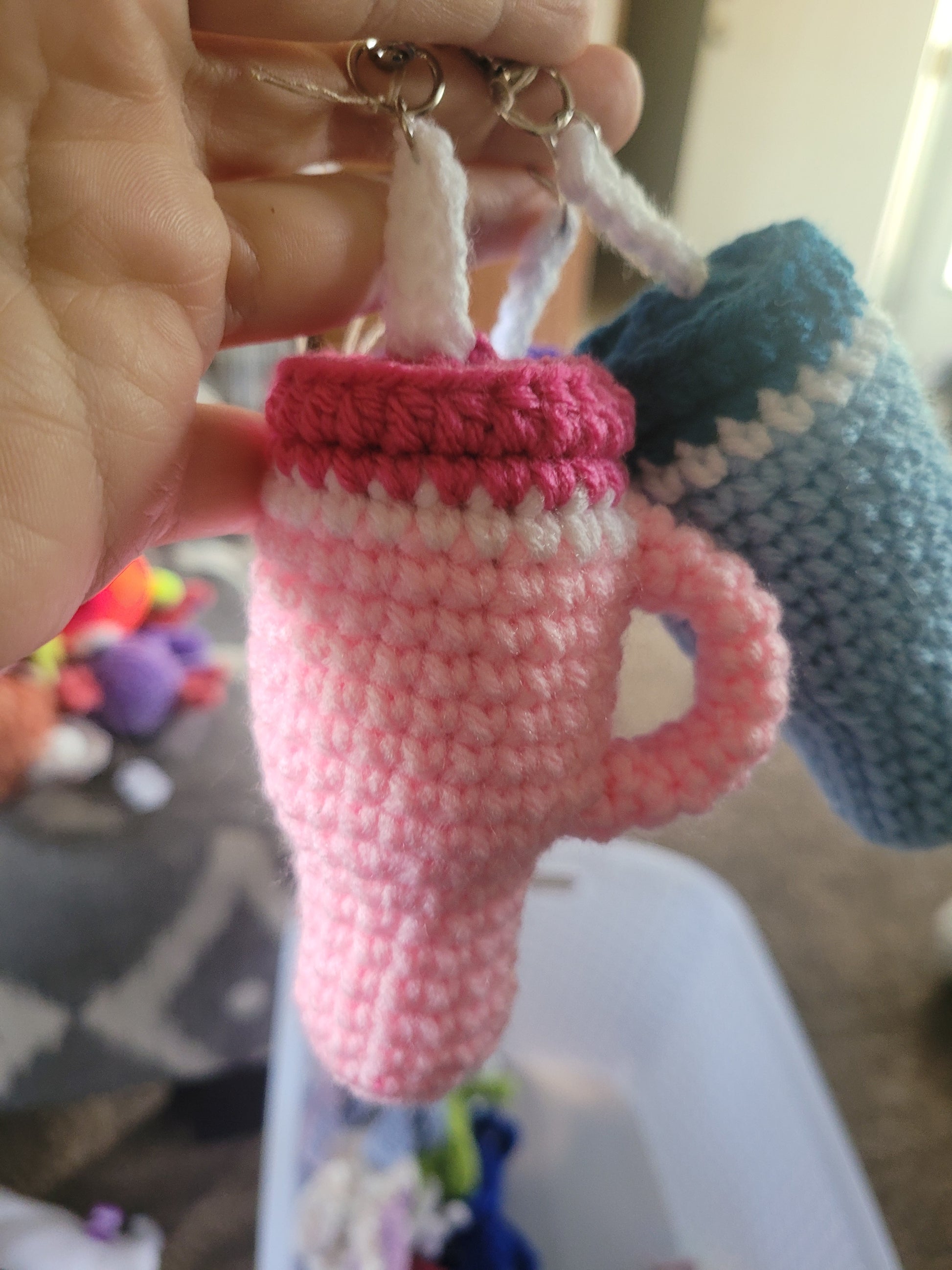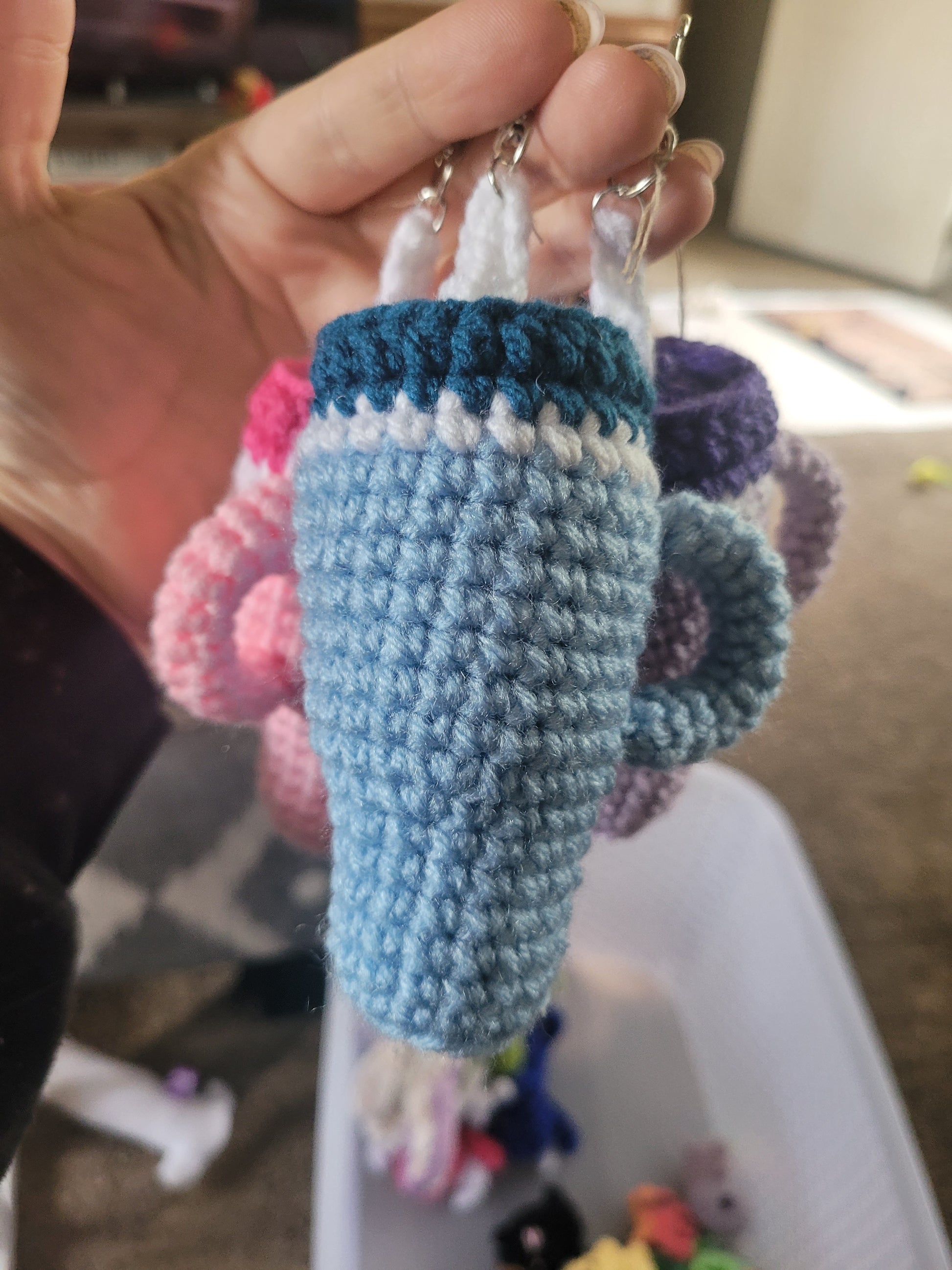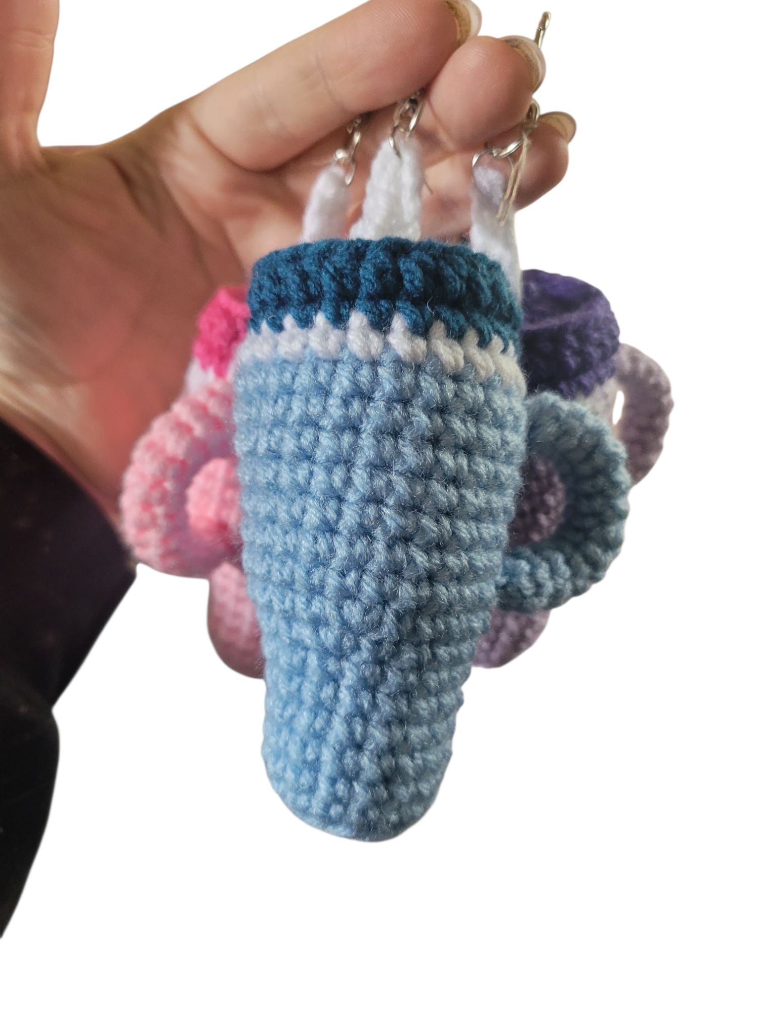 LuvKnotz Tiny Stanley Keychain Handmade Crochet - Soft Acrylic Yarn, Approx. 4" Long, OOAK stuffed