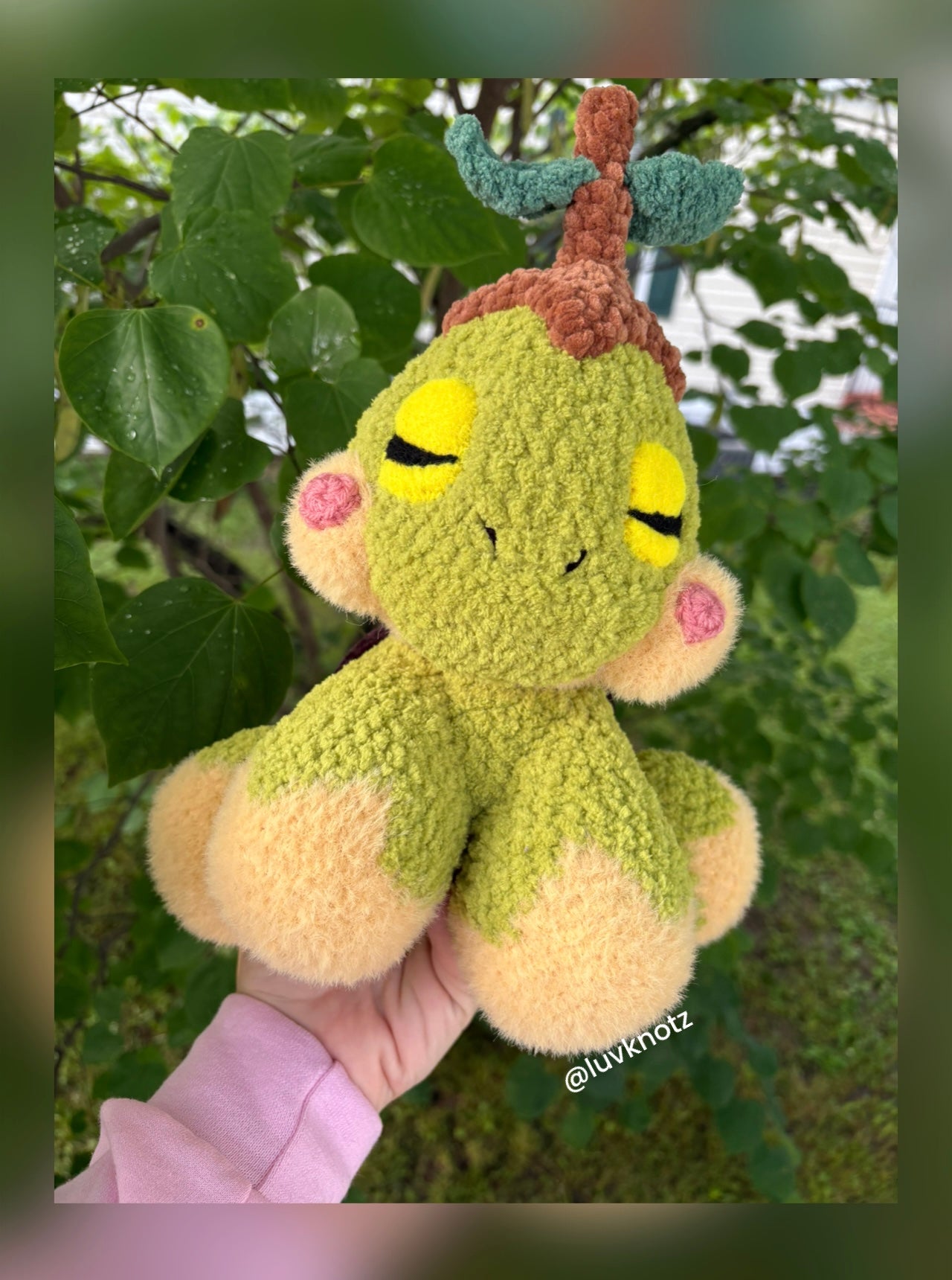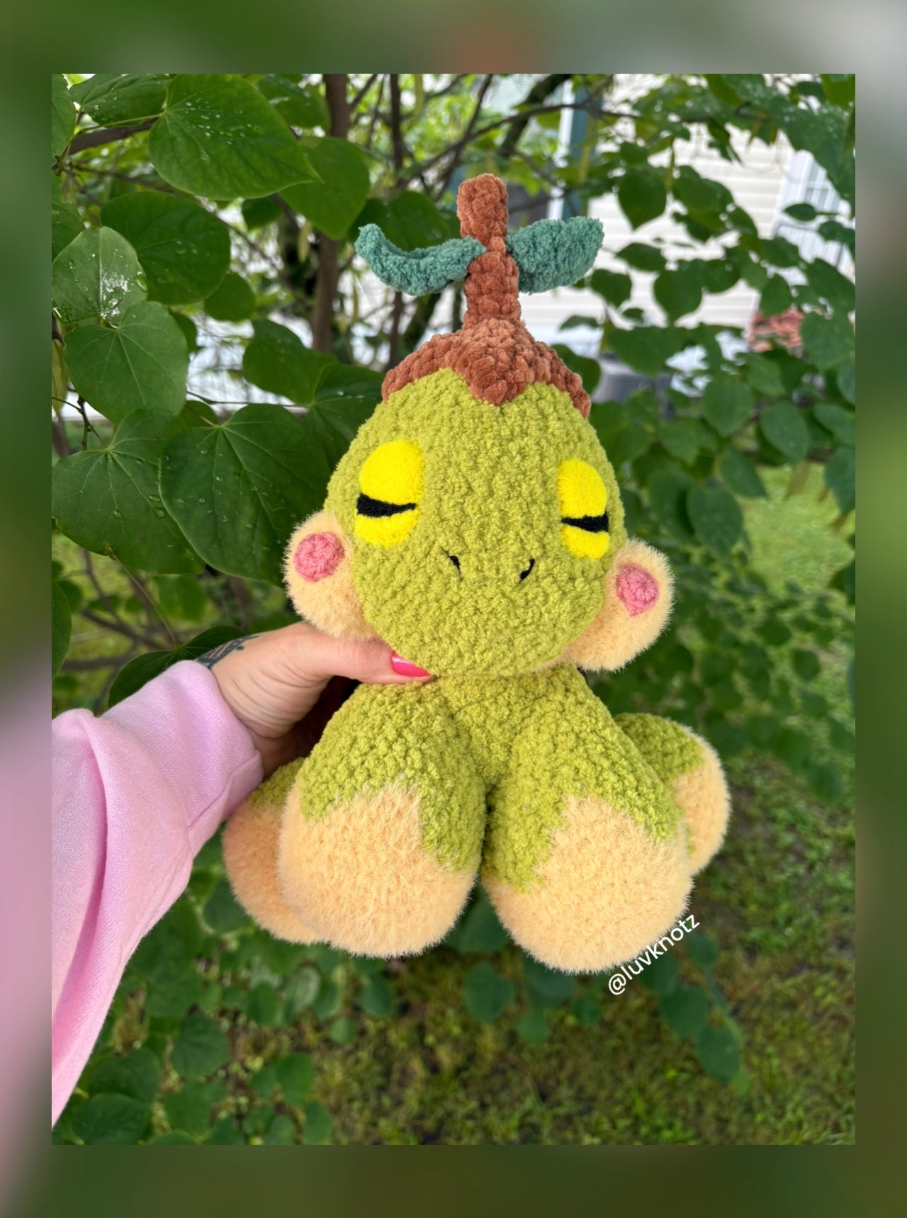 CUSTOM FOR HANNAH - Turtwig - Turtle Sleepy Pokemon Inspired - Unique Design for Stuffed Animal - Approx 16”