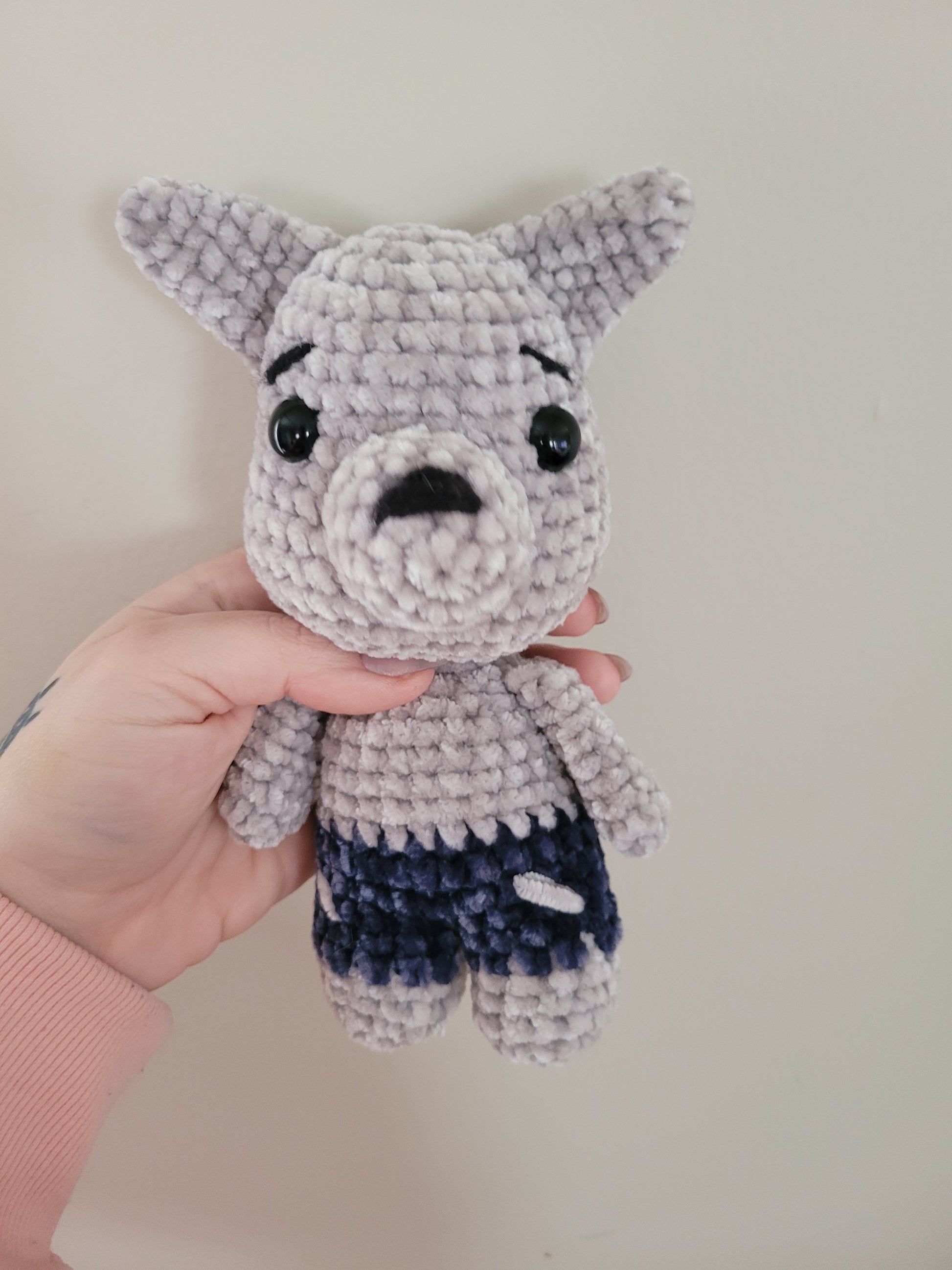 Grey Werewolf - Grey Wolf Inspired Animal - Unique Design for Stuffed Animal - approx 8"