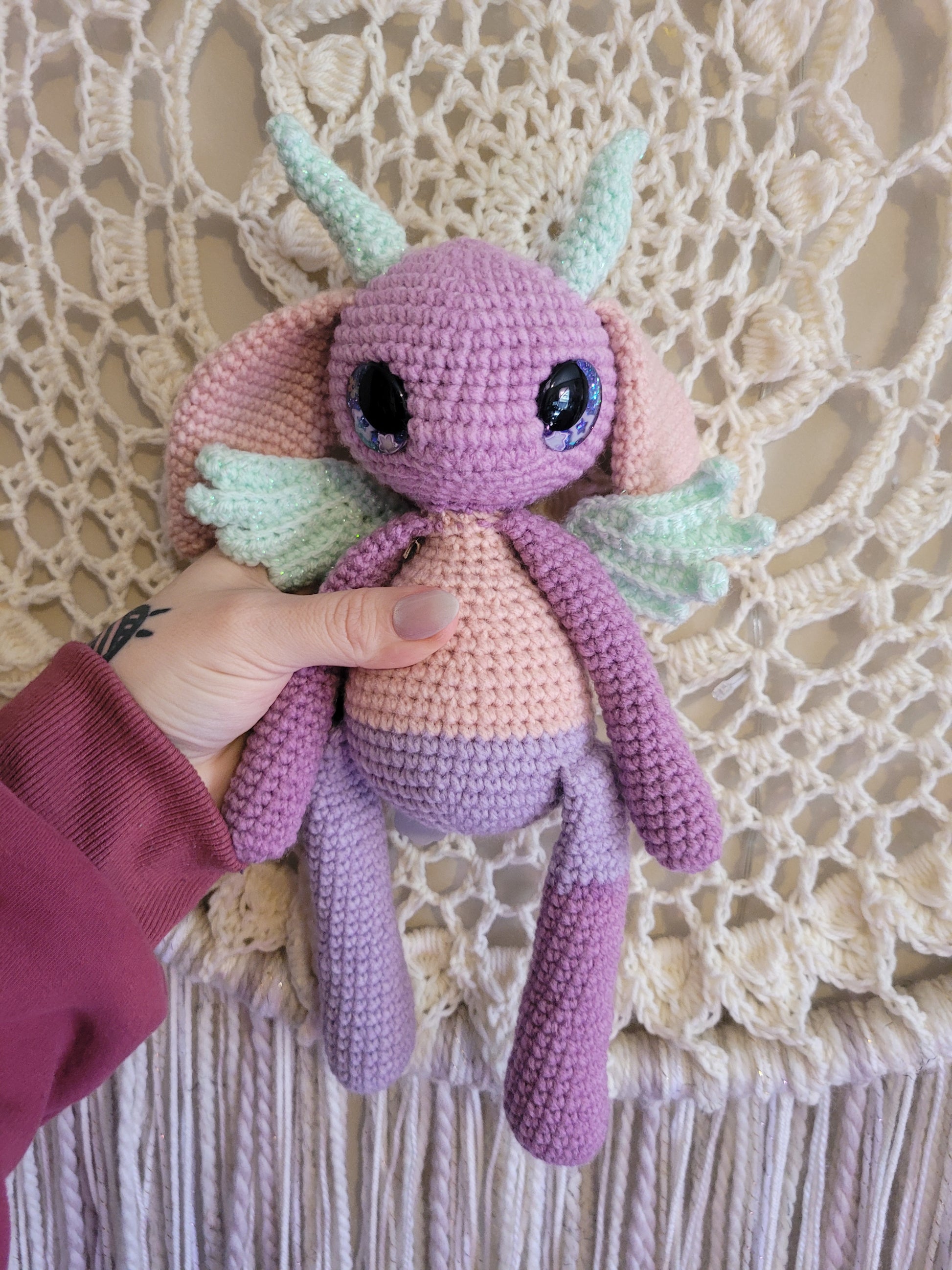 Large Purple Horned Wing Sprite Mythical Creature - Unique Design for Stuffed Animal