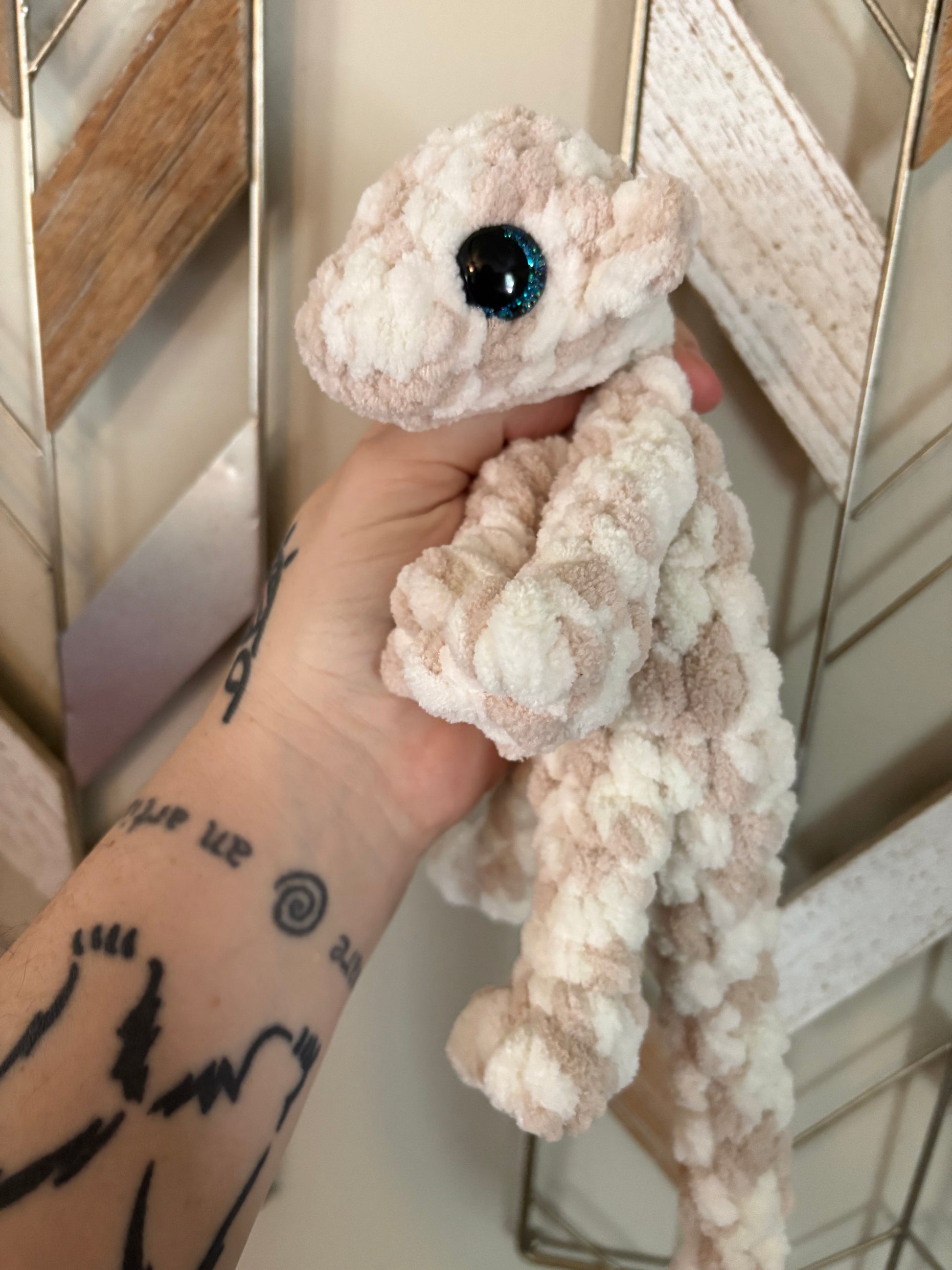 LuvKnotz Cream Dappled Baby Dragon Handmade Crochet - Soft Chenille Yarn, Approx. 14" Long, Hand Painted Eyes, OOAK stuffed animals