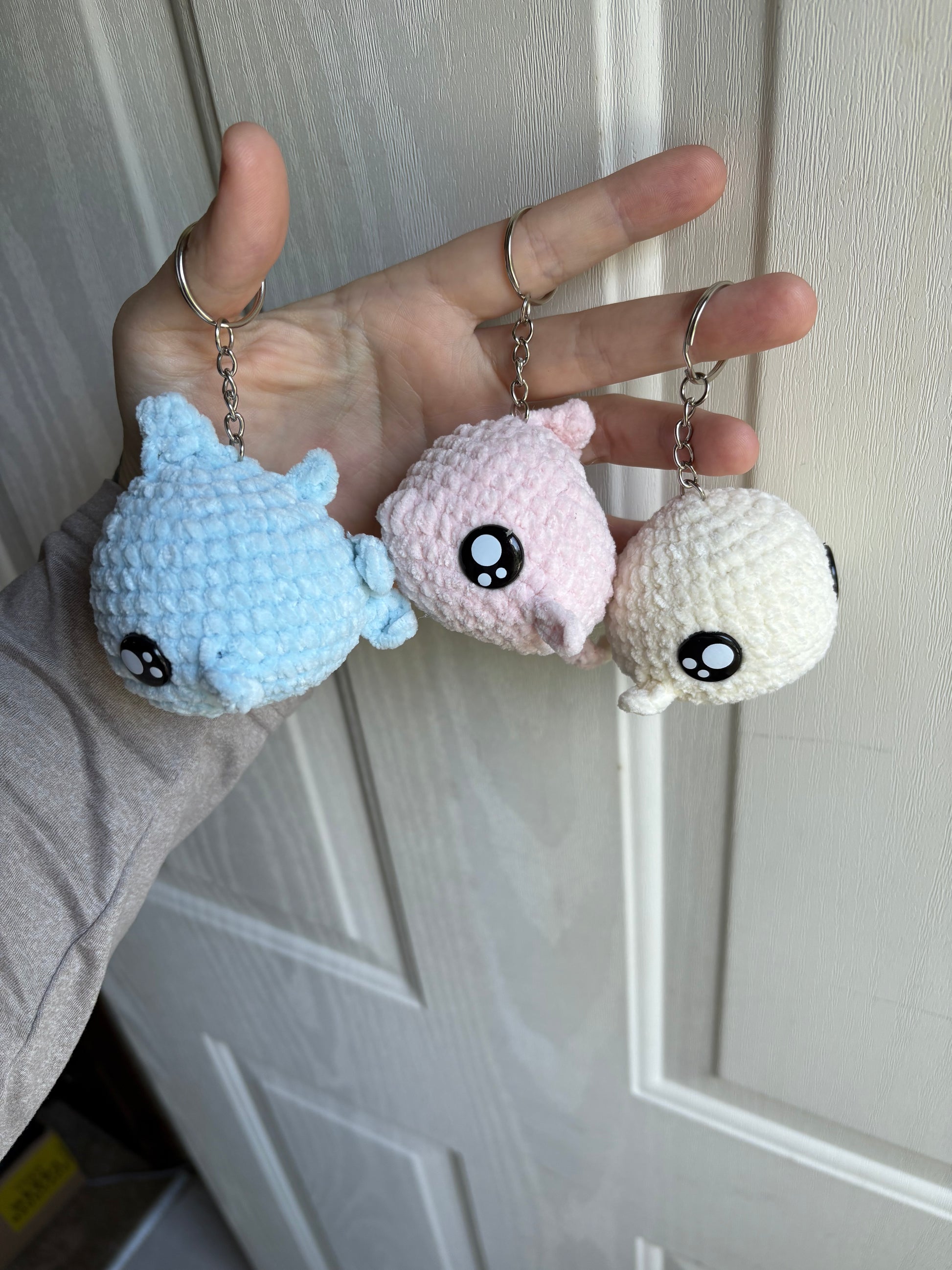 LuvKnotz Keychain Whale Shark Dolphin Handmade Crochet - Soft Acrylic Yarn, Approx. 3” Long, OOAK stuffed animals