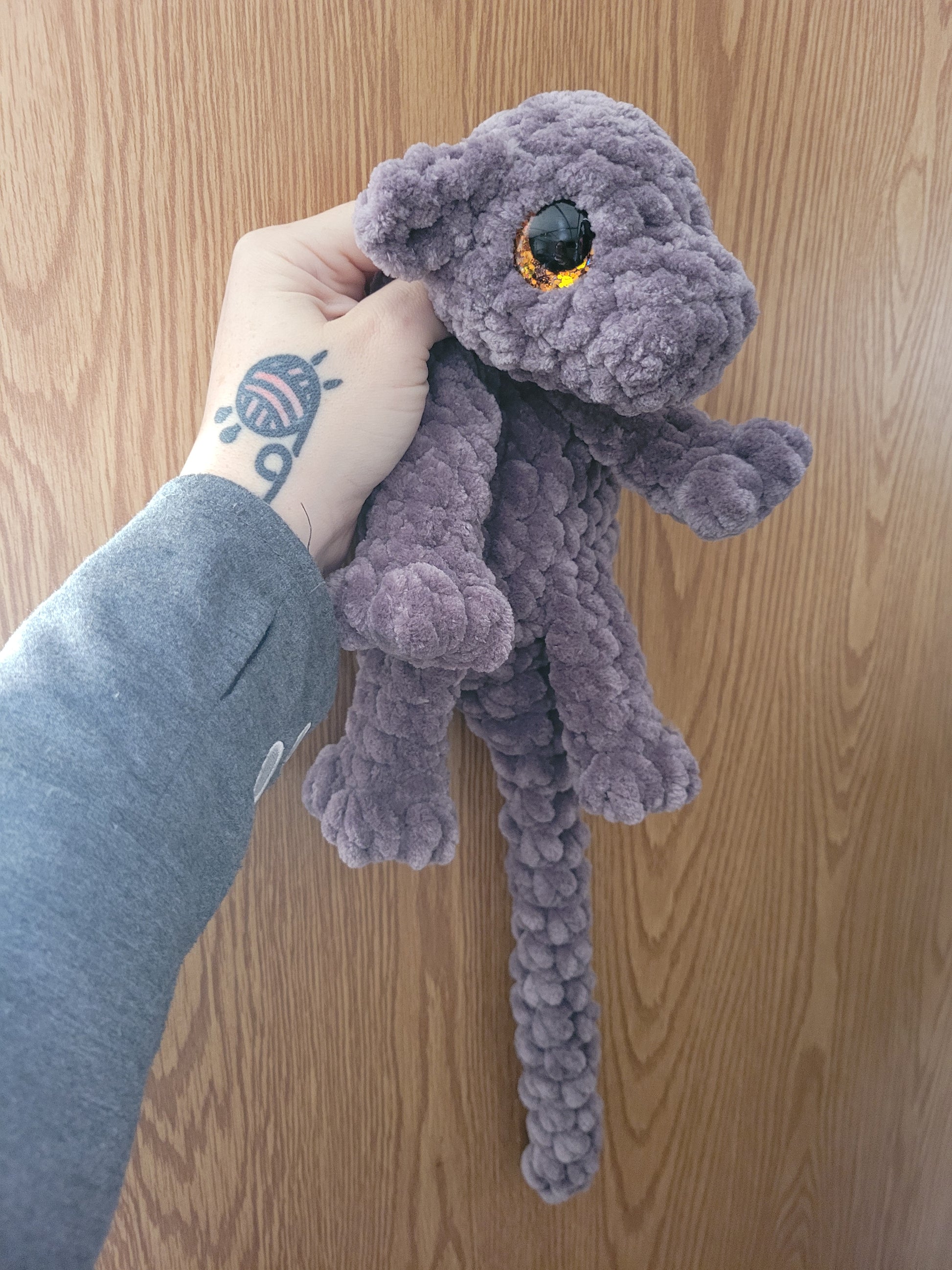 One of a kind handmade crochet baby dragon - made with soft to the touch chenille yarn - perfect cuddling companion for you or a gift for someone special.