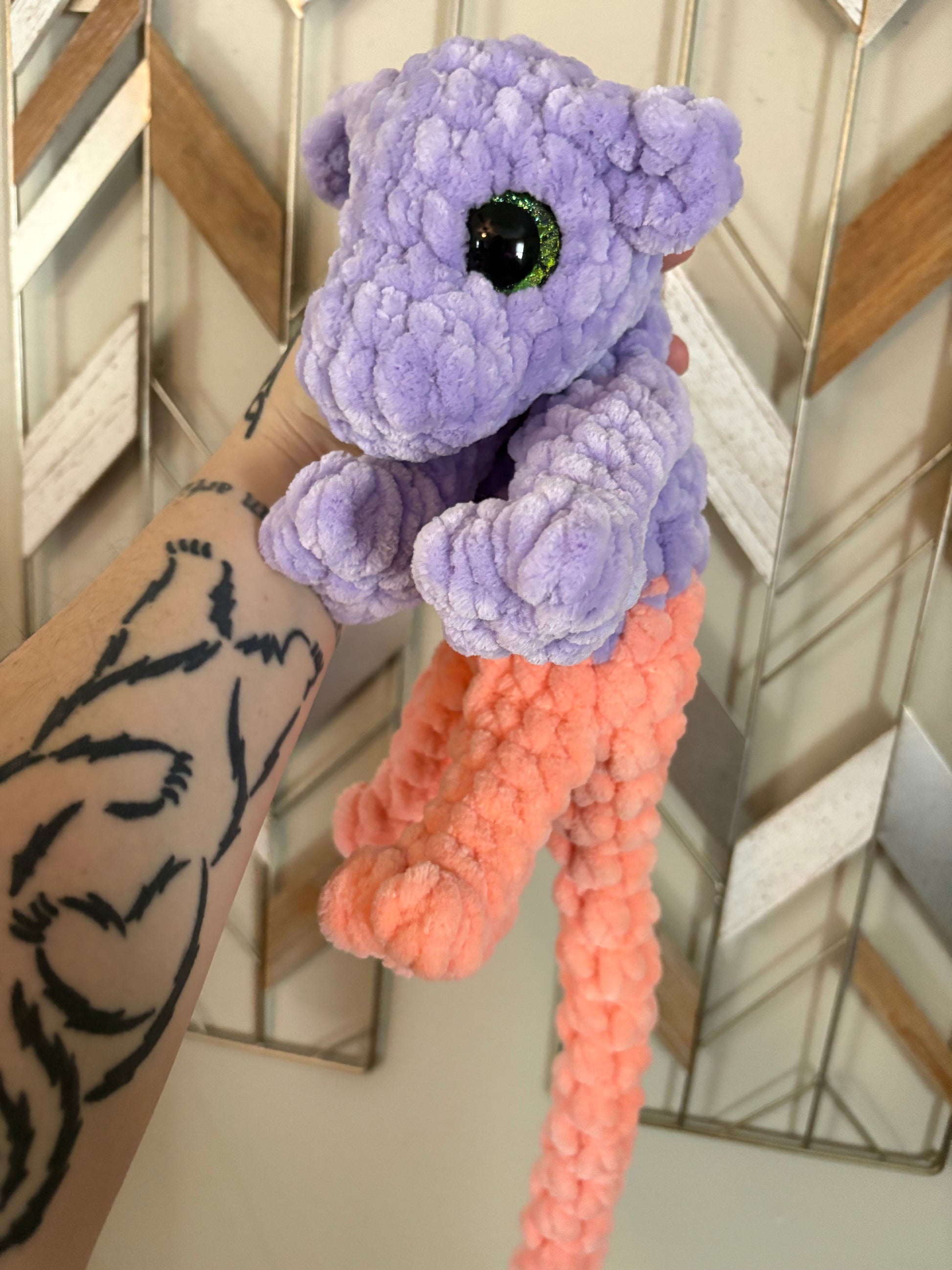 LuvKnotz Large Purple Coral Baby Dragon Handmade Crochet - Soft Chenille Yarn, Approx. 24" Long, hand painted Eyes, OOAK stuffed animals