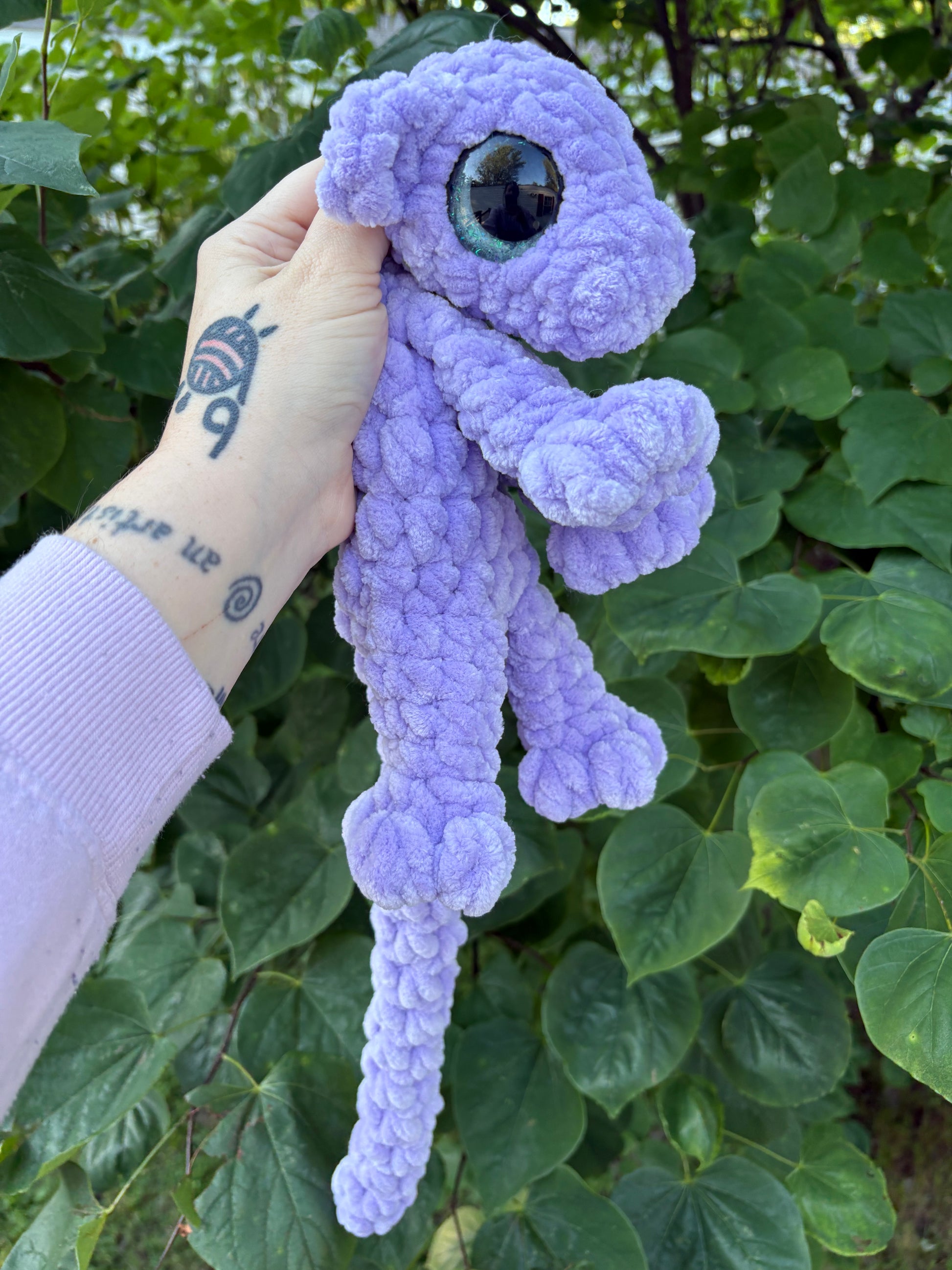LuvKnotz Large Lavender Baby Dragon Handmade Crochet - Soft Chenille Yarn, Approx. 24" Long, Silver Eyes, OOAK stuffed animals