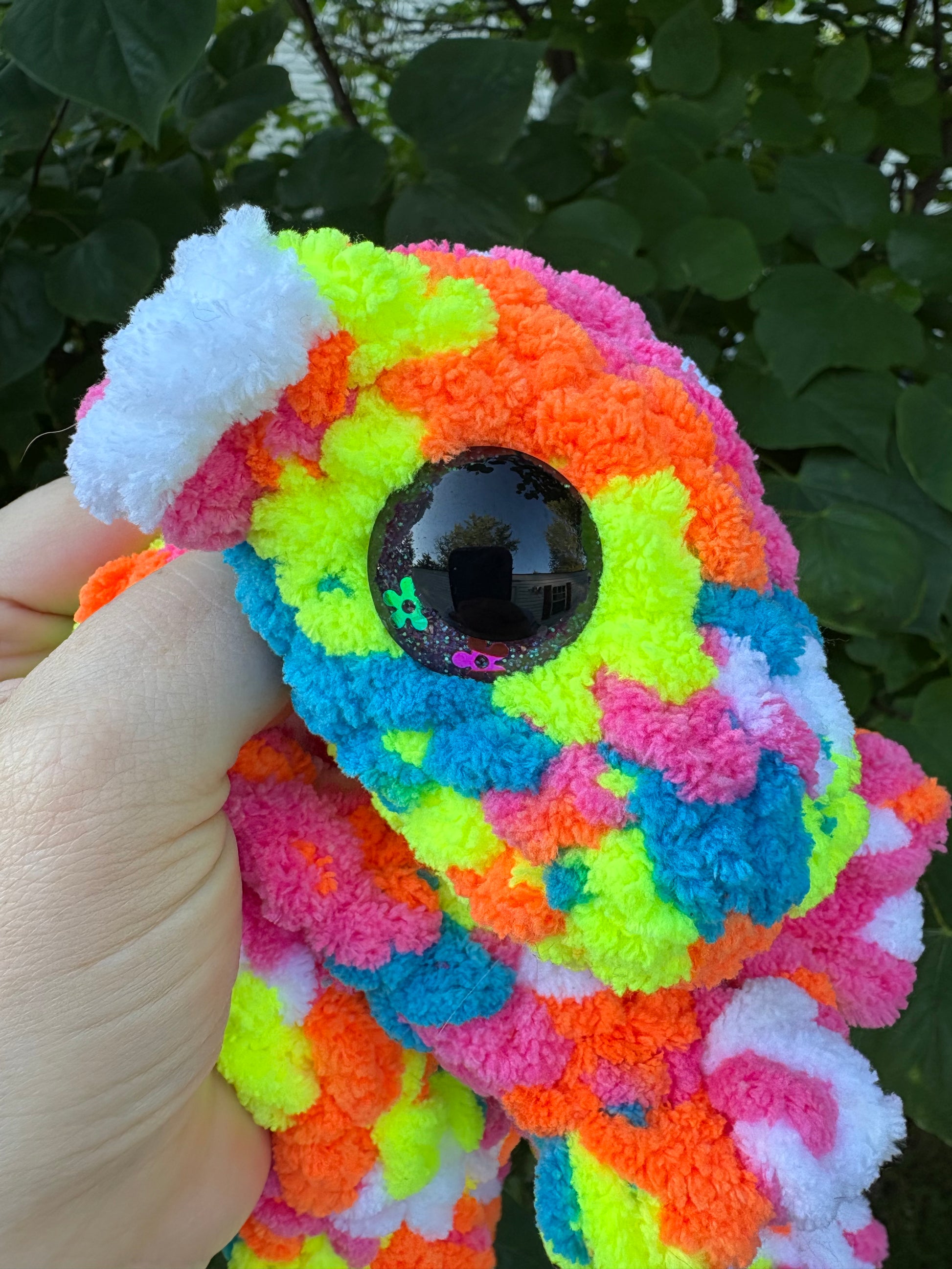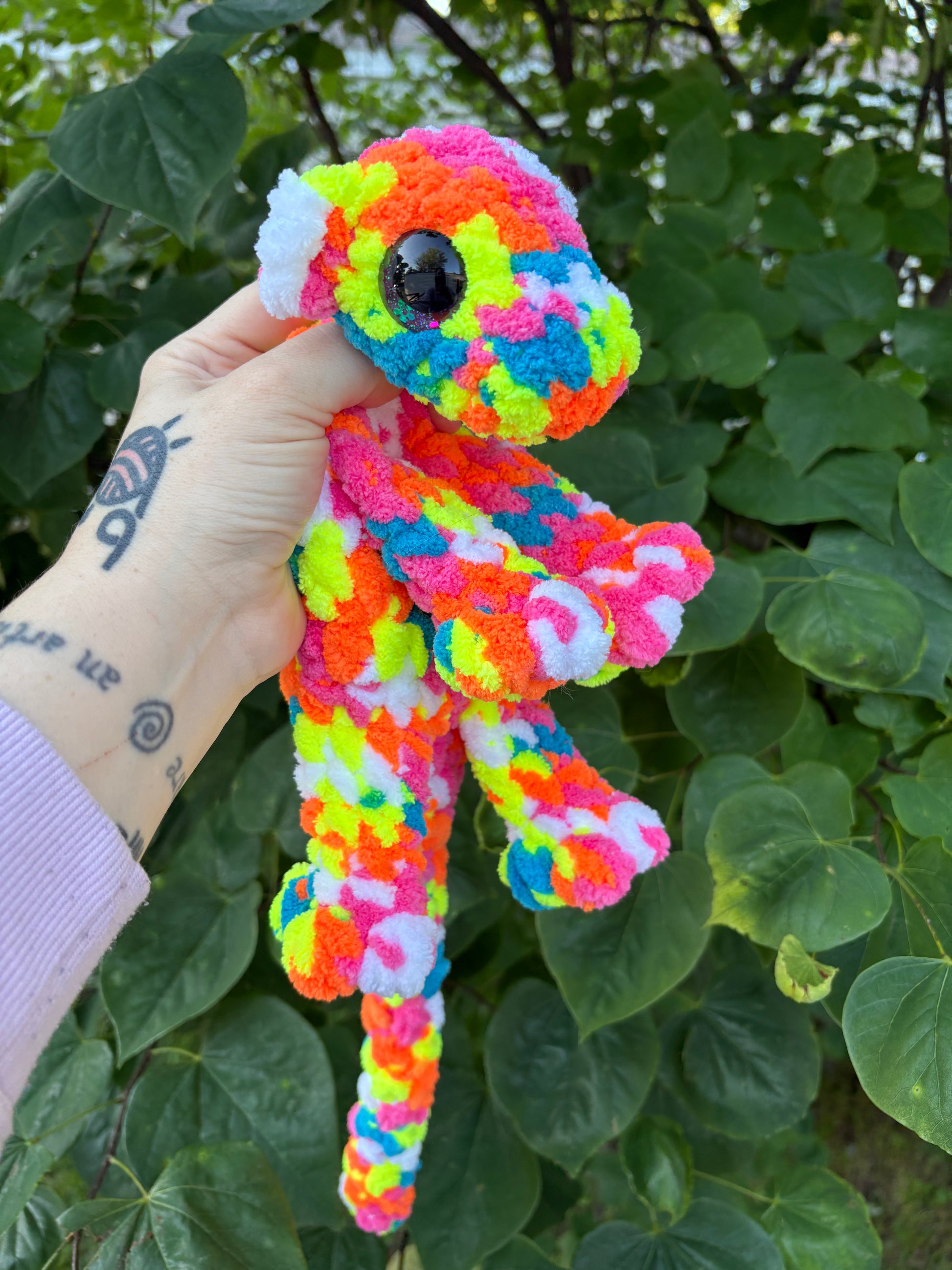 LuvKnotz Large Tie Dye Baby Dragon Handmade Crochet - Soft Chenille Yarn, Approx. 24" Long, Floral Eyes, OOAK stuffed animals
