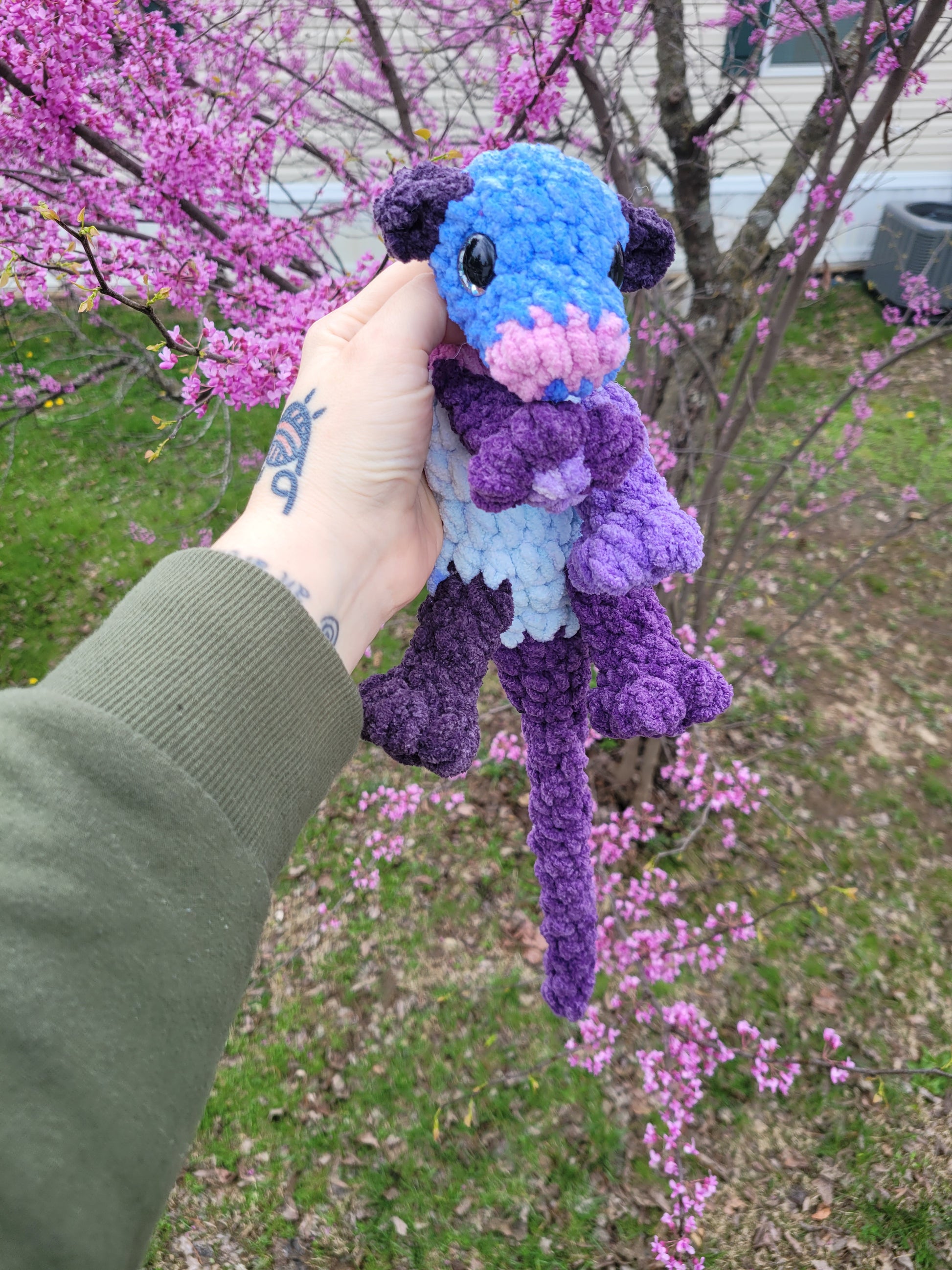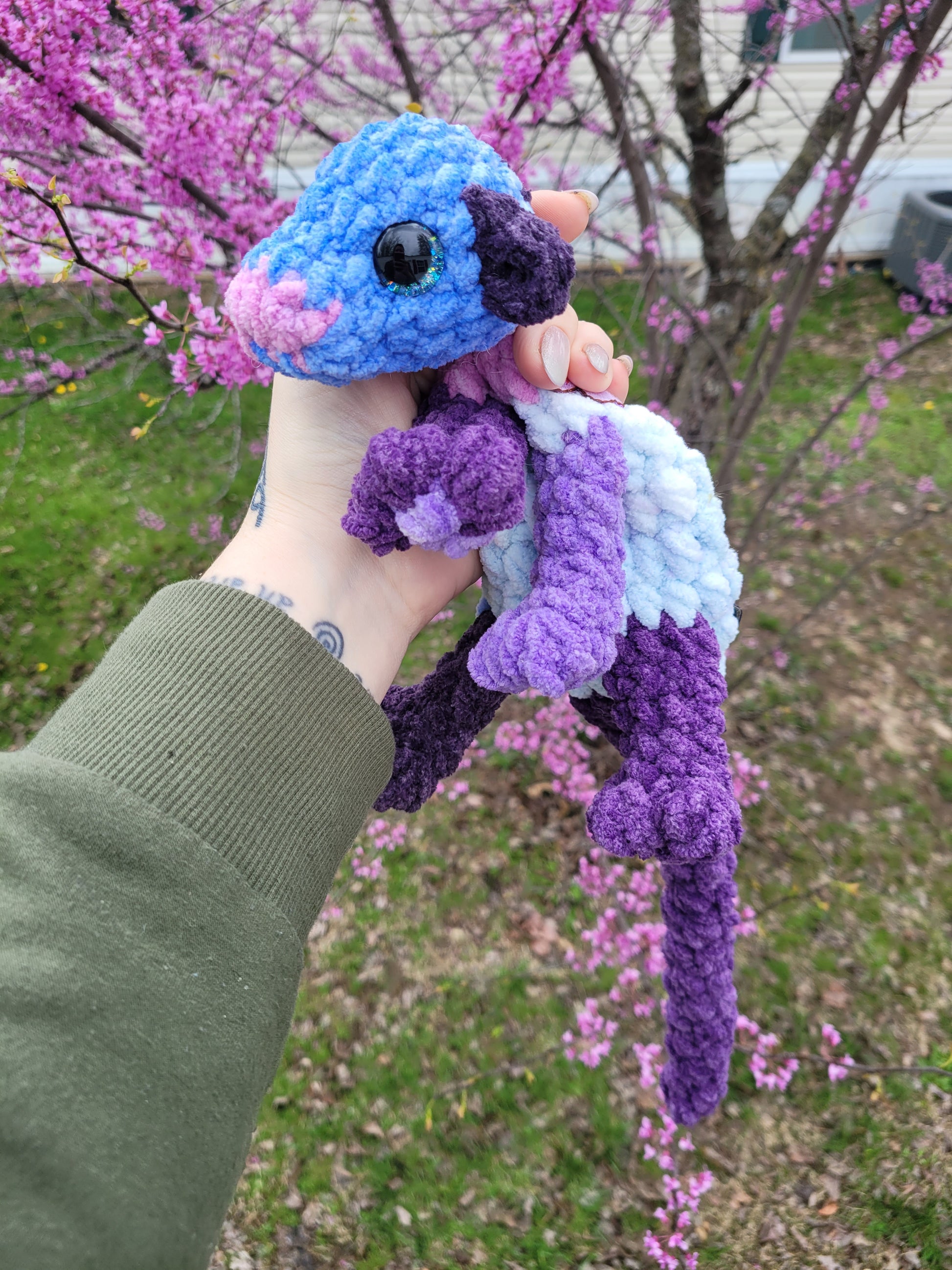 One of a kind handmade crochet baby dragon - made with soft to the touch chenille yarn - perfect cuddling companion for you or a gift for someone special.
