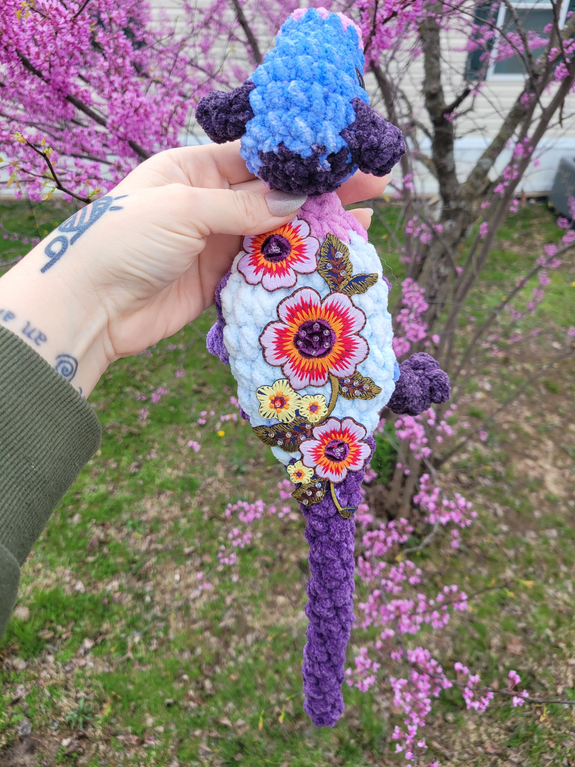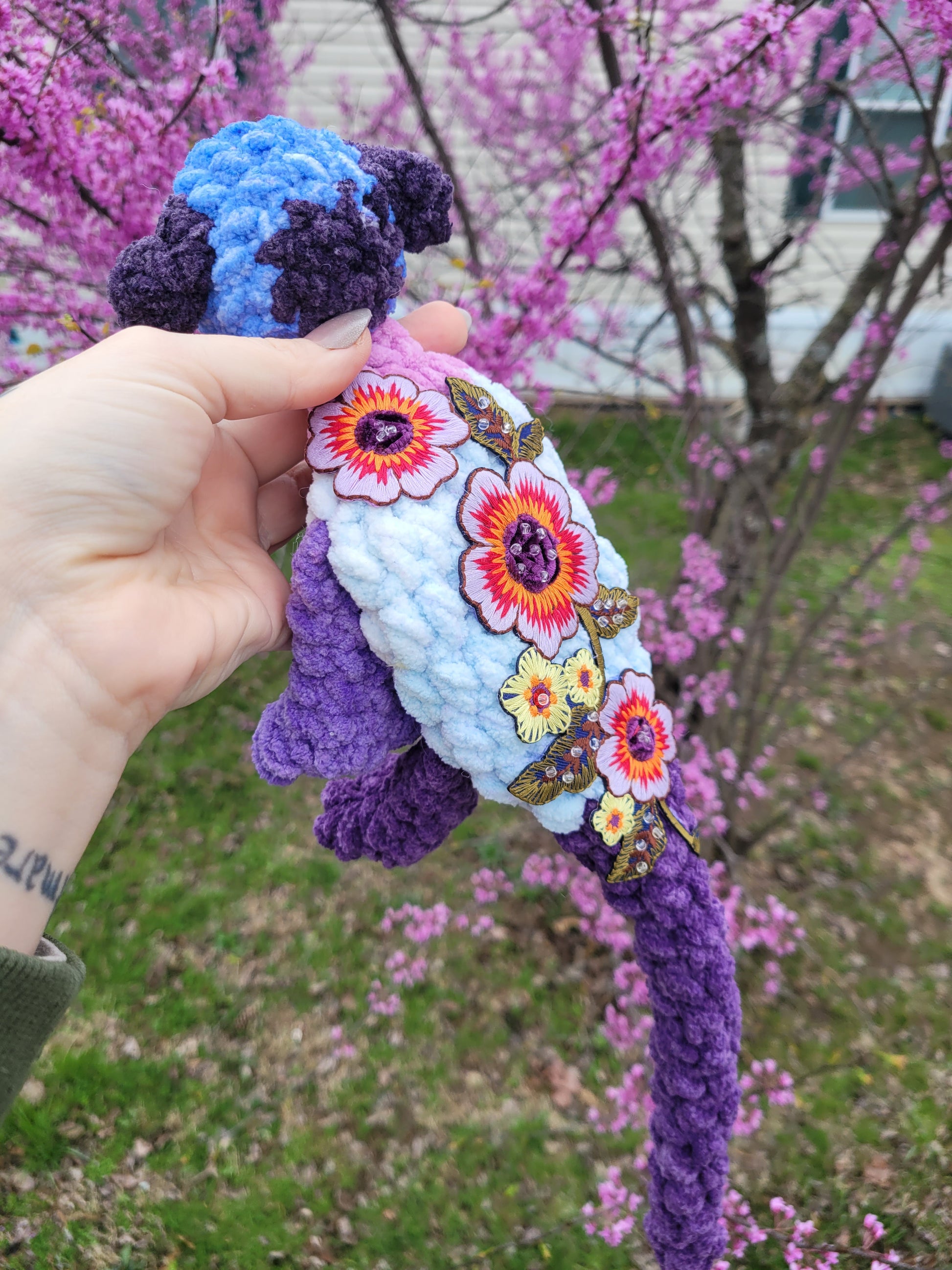LuvKnotz Medium Baby Patchwork Embroidered Dragon Handmade Crochet - Soft Chenille Yarn, Approx. 14" Long, Clear Glitter Eyes, OOAK stuffed animals