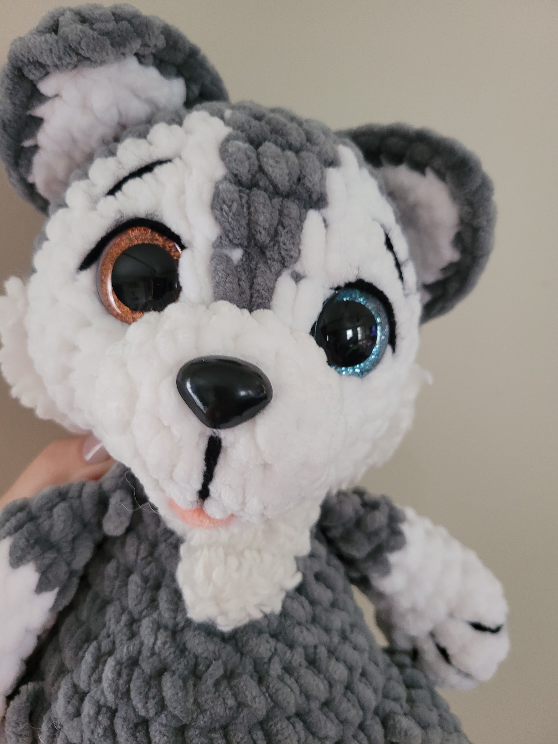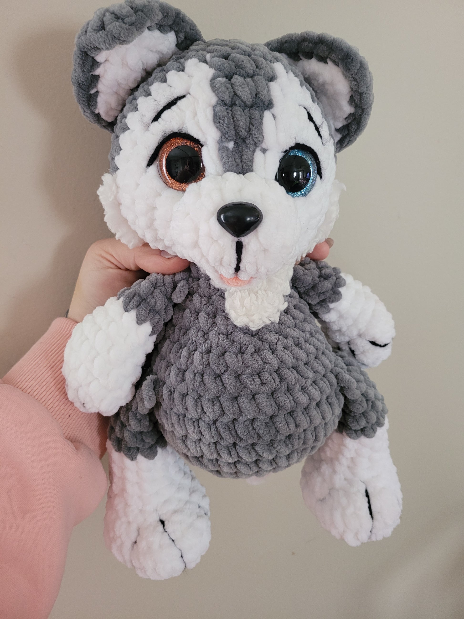 LuvKnotz Large Grey Mixed Eye Husky Wolf Dog - Unique Design for Stuffed Animal - approx 16"