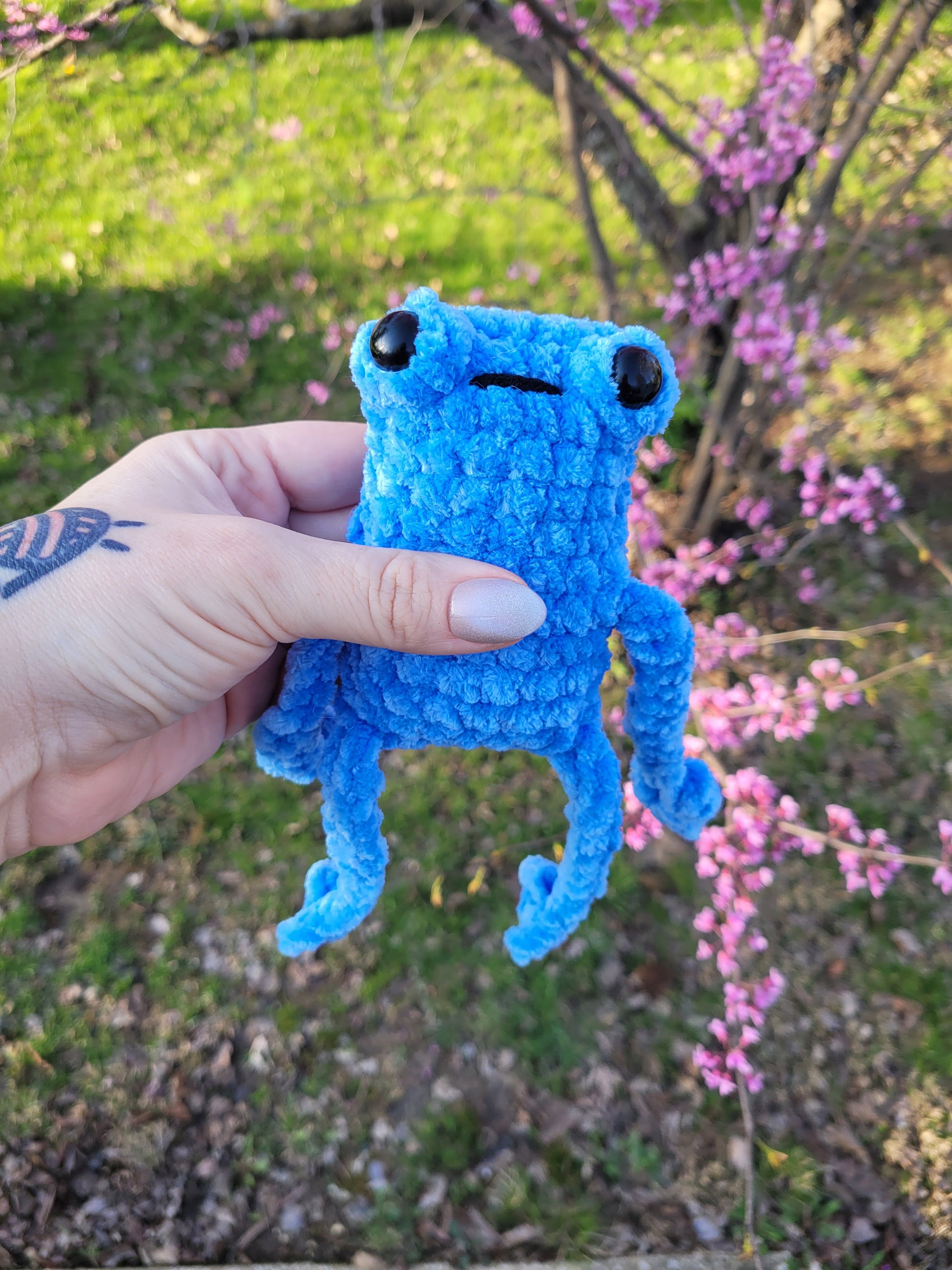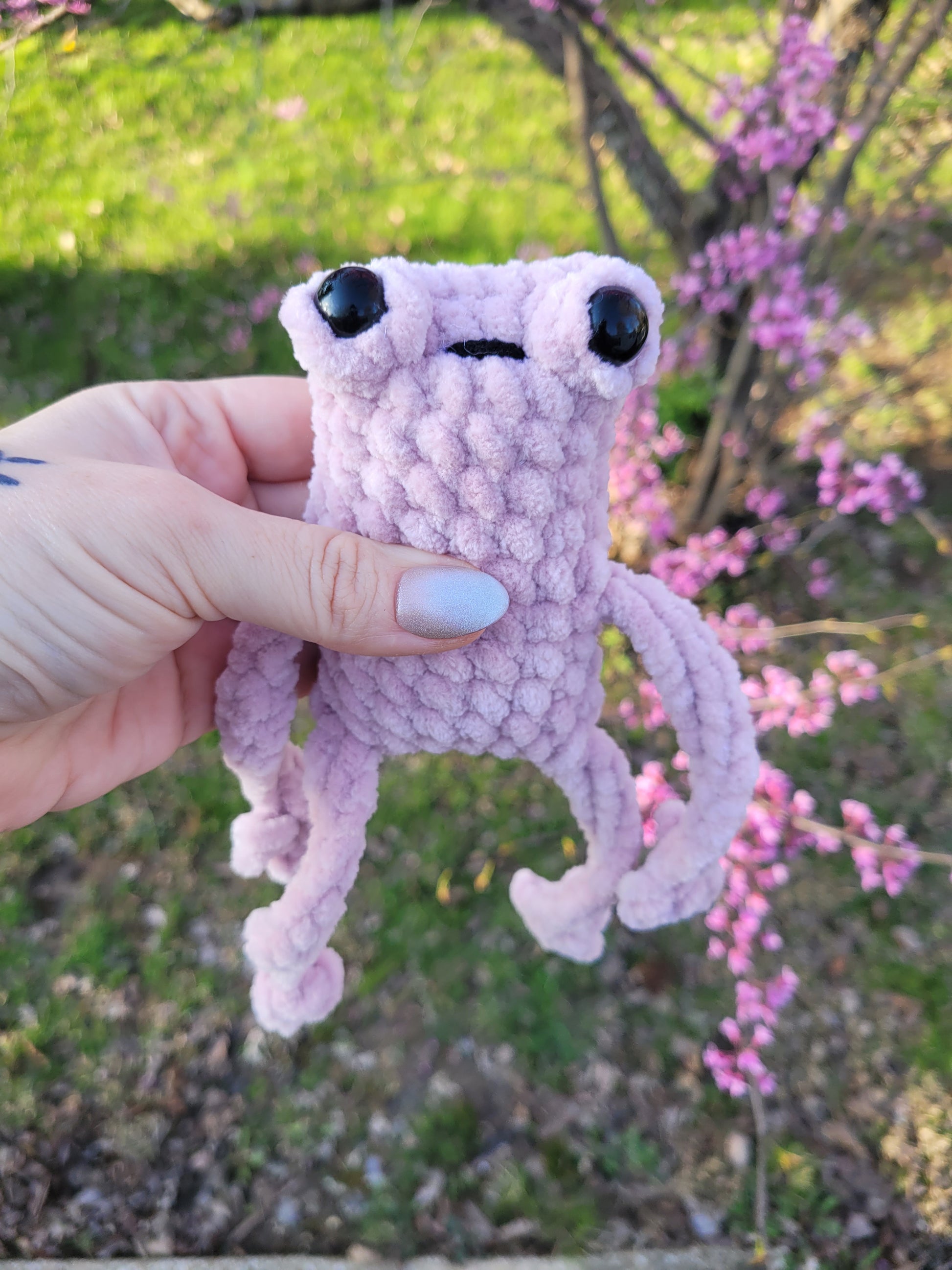One of a kind handmade crochet frog - made with soft to the touch chenille yarn