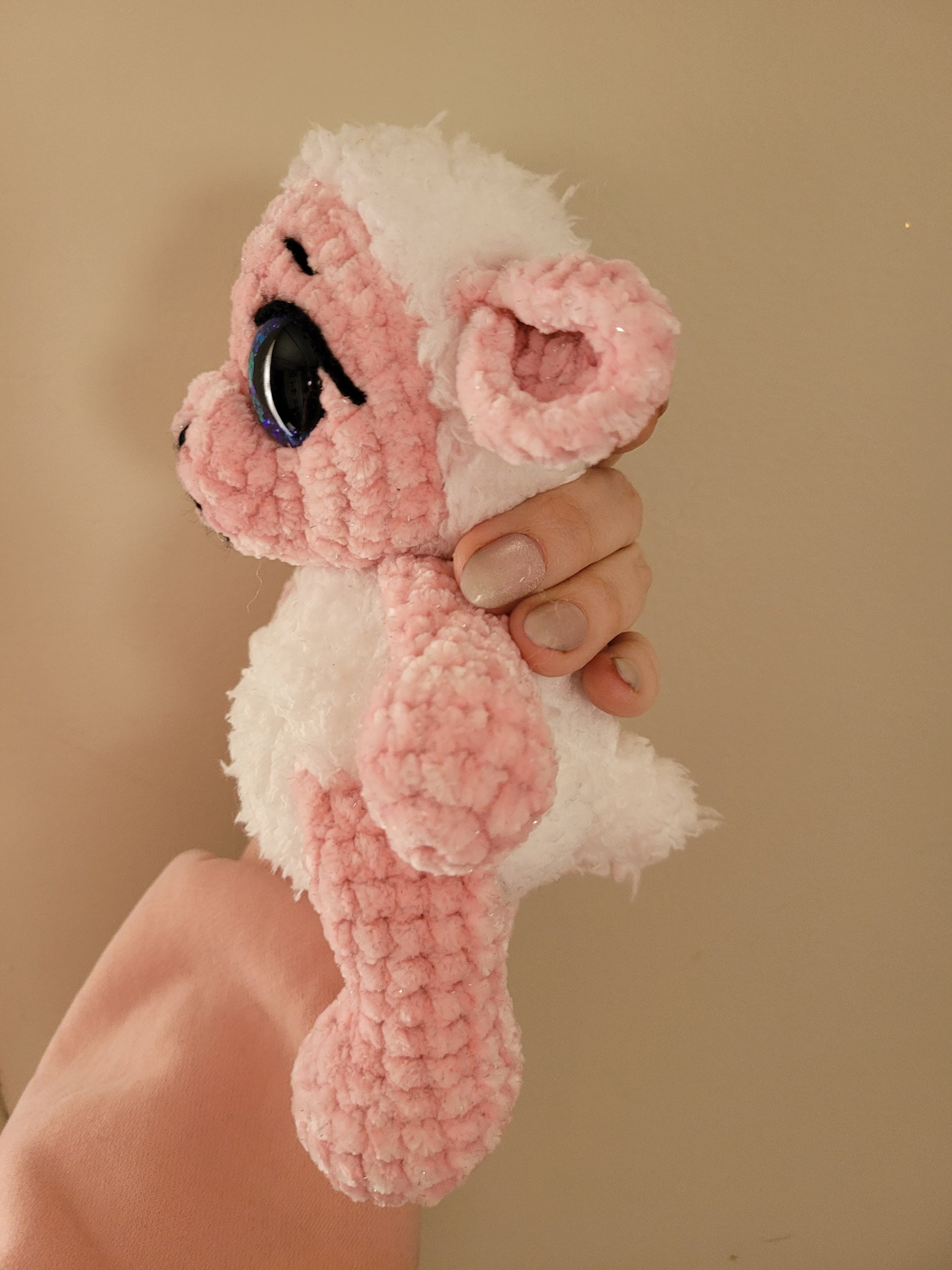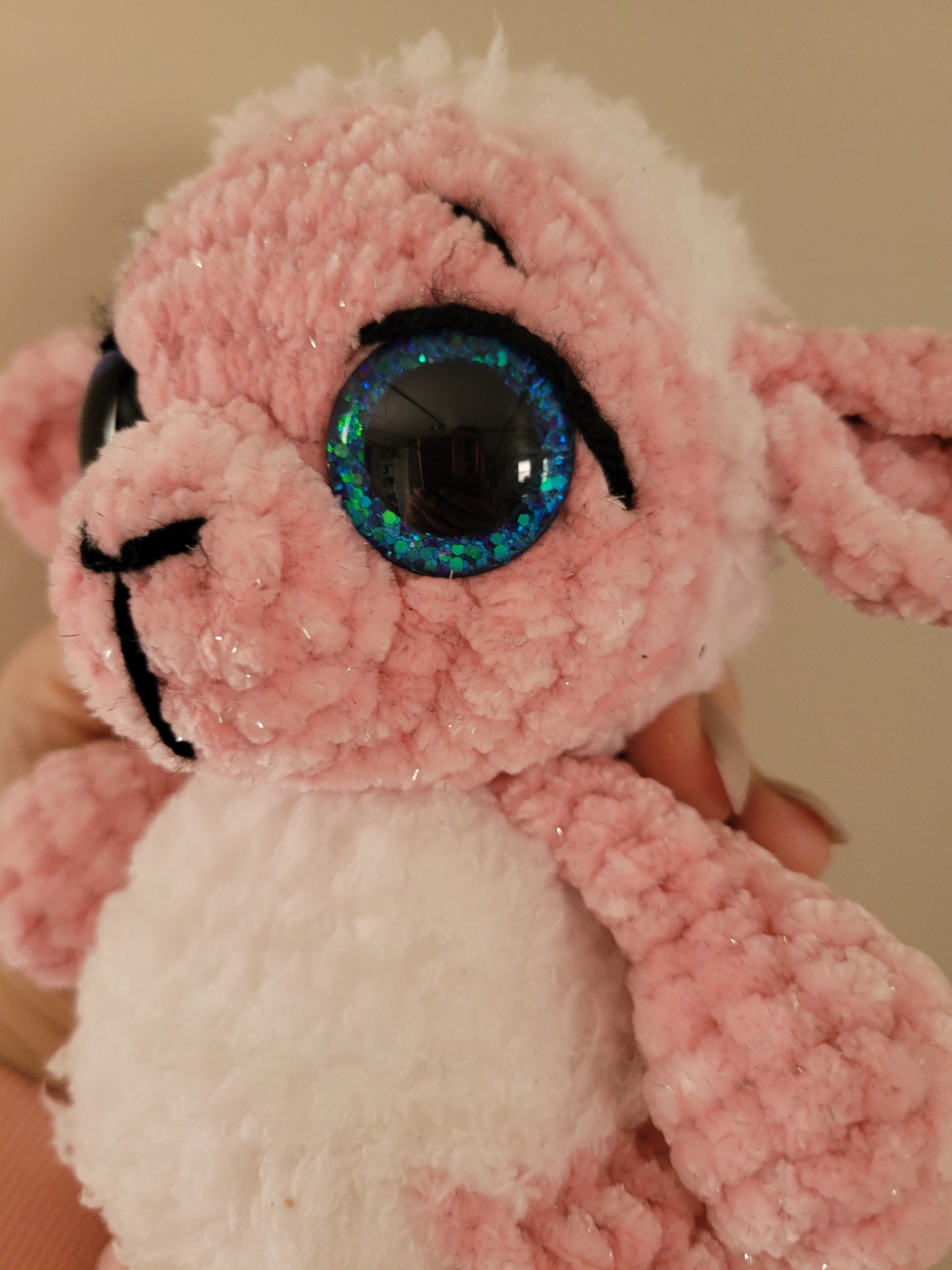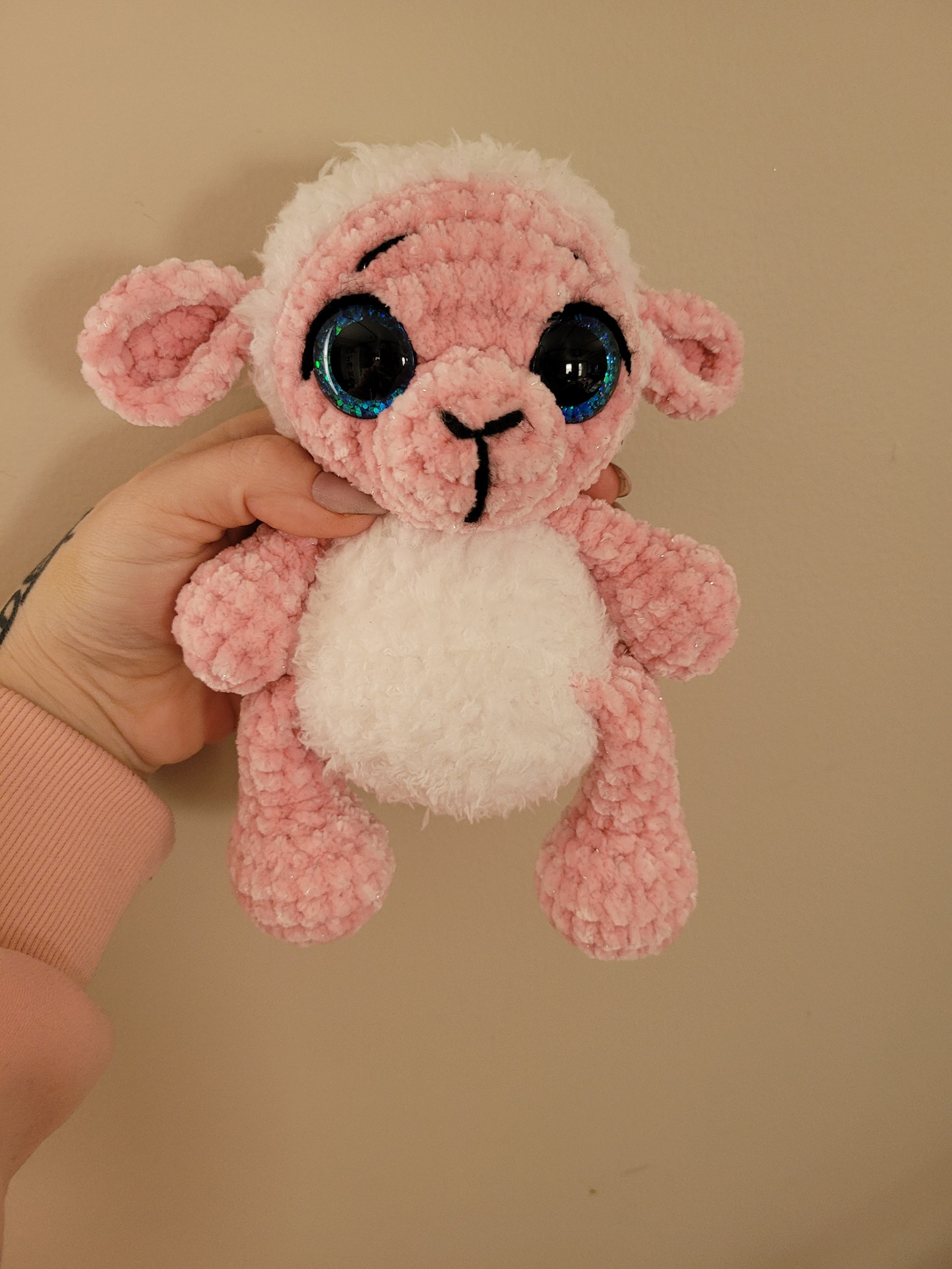 LuvKnotz Medium Pink White Lamb - Unique Design for Stuffed Animal - approx. 10" - glitter blue eyes