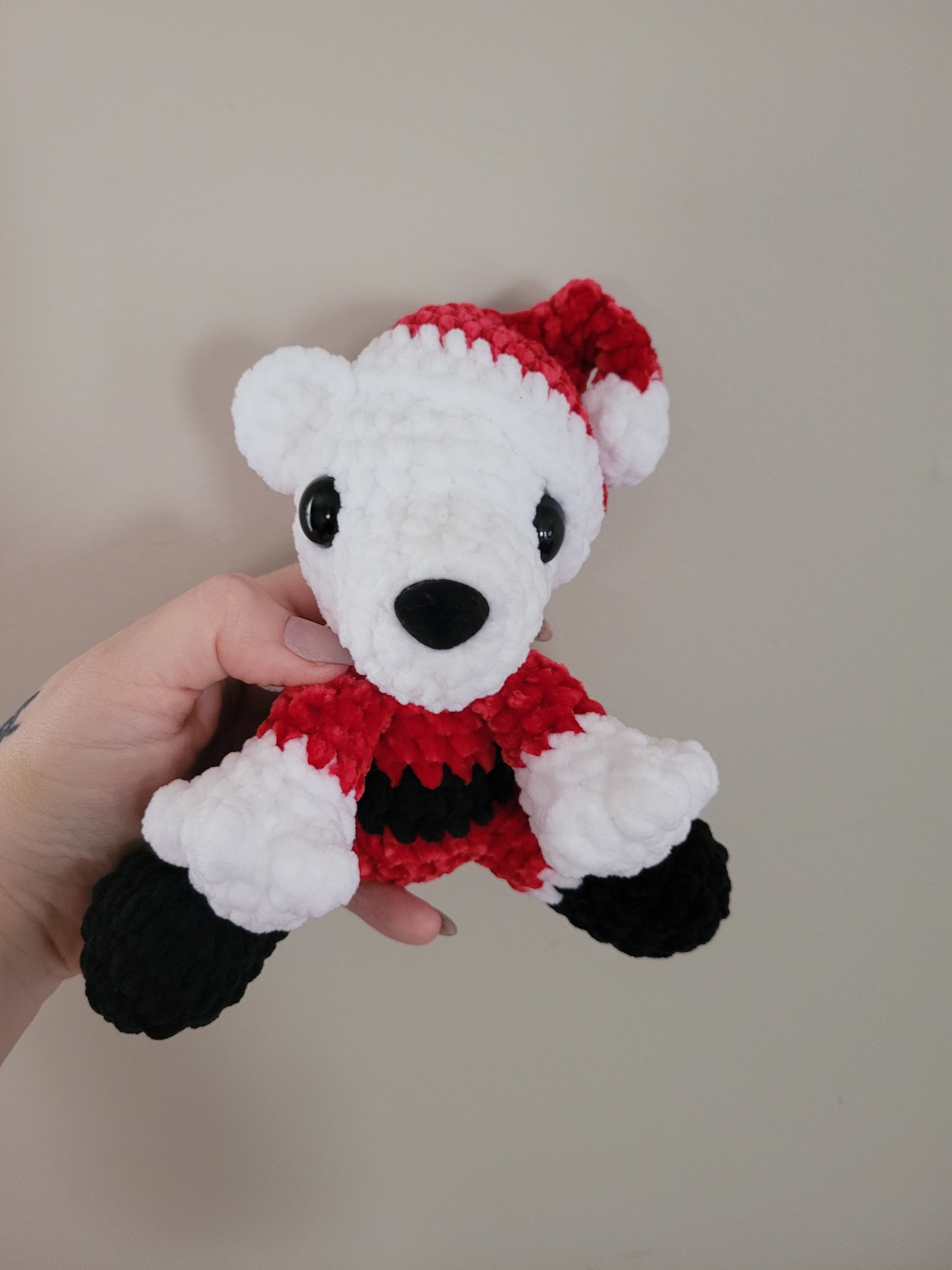 LuvKnotz Medium Christmas Santa White Polar Bear Plush - Unique Design for Stuffed Animal - approx 8"