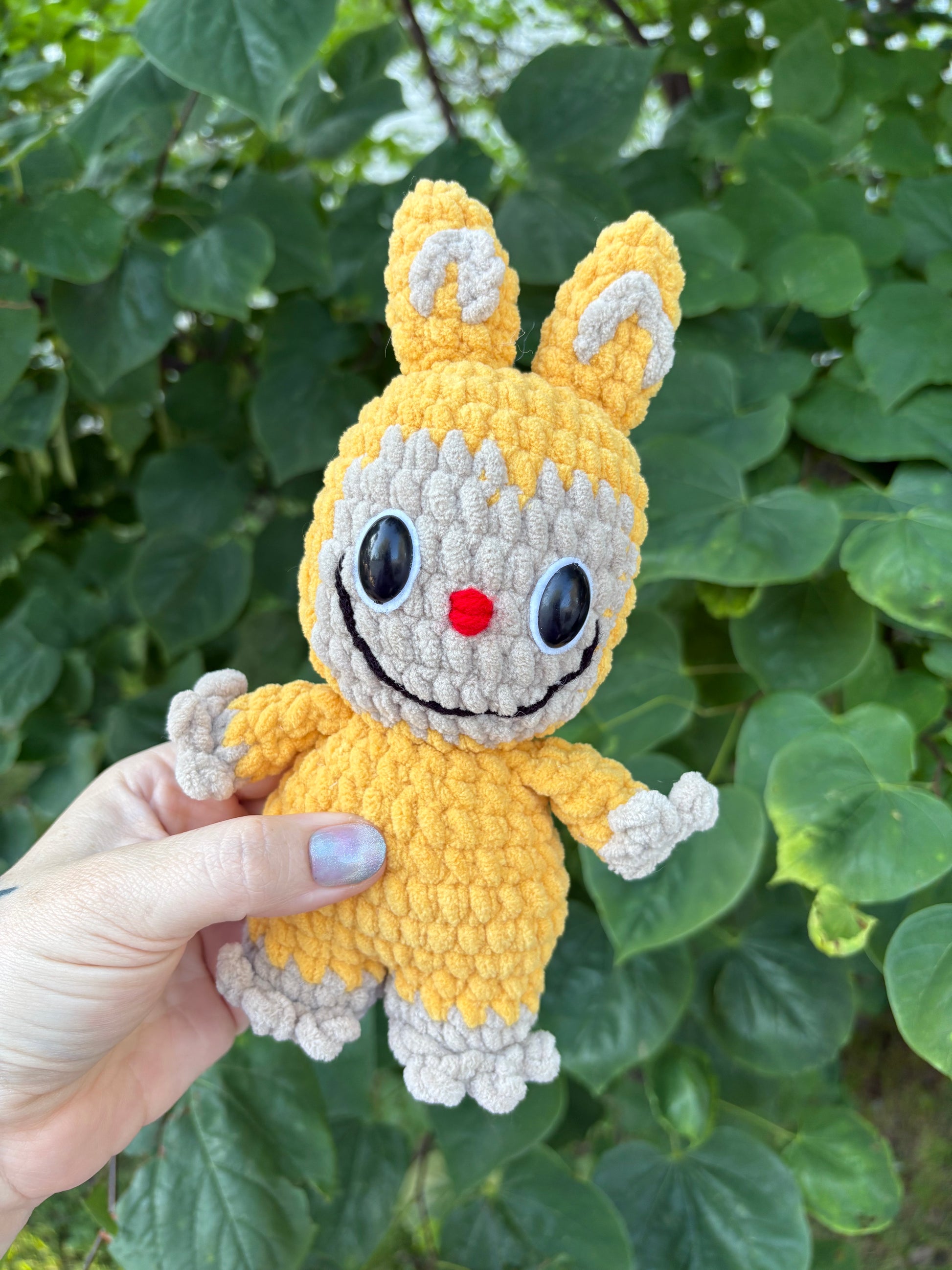 LuvKnotz Medium Yellow LaBuBu Handmade Crochet - Soft chenille Yarn, Approx. 8” Tall, stuffed animals
