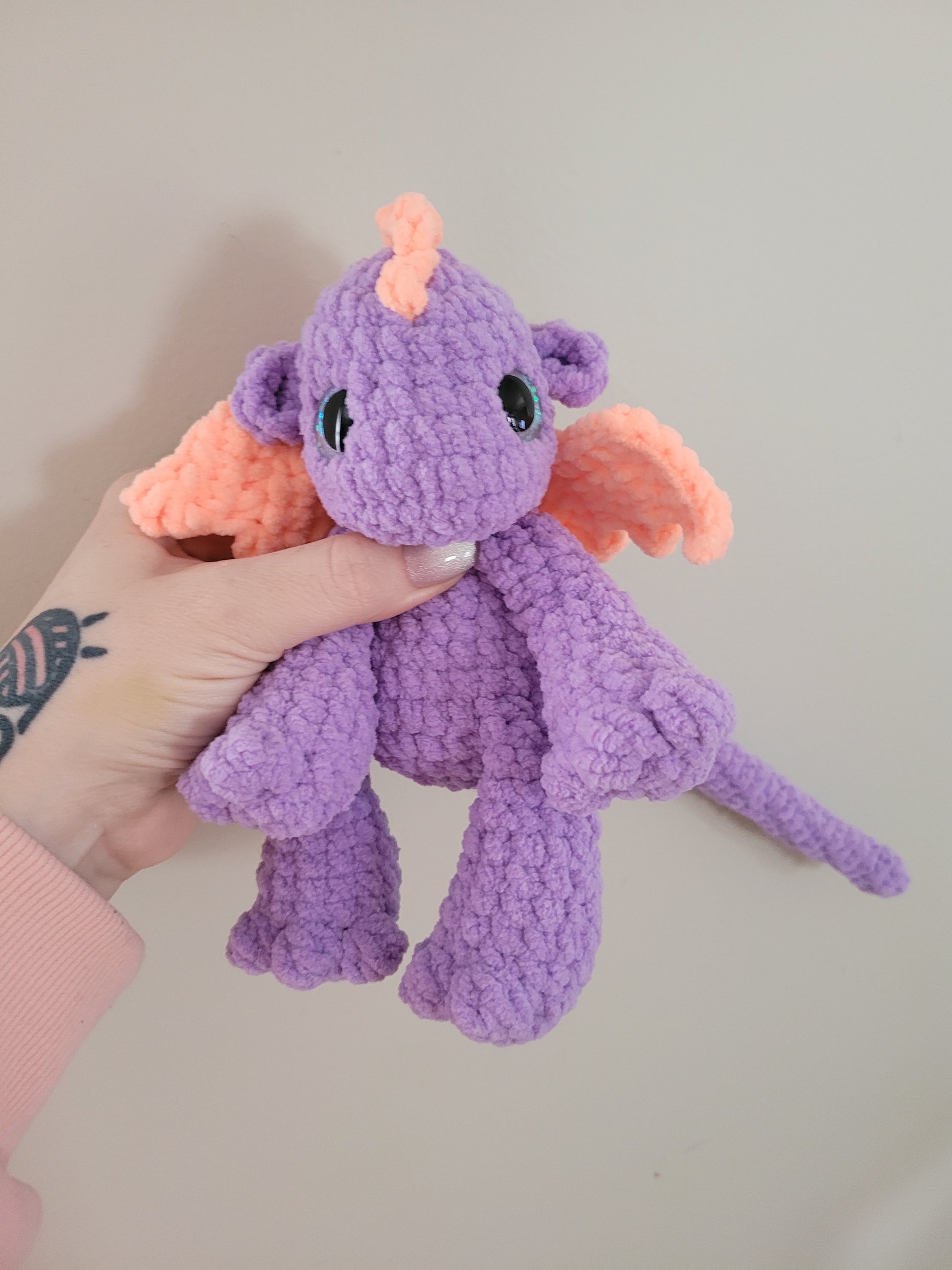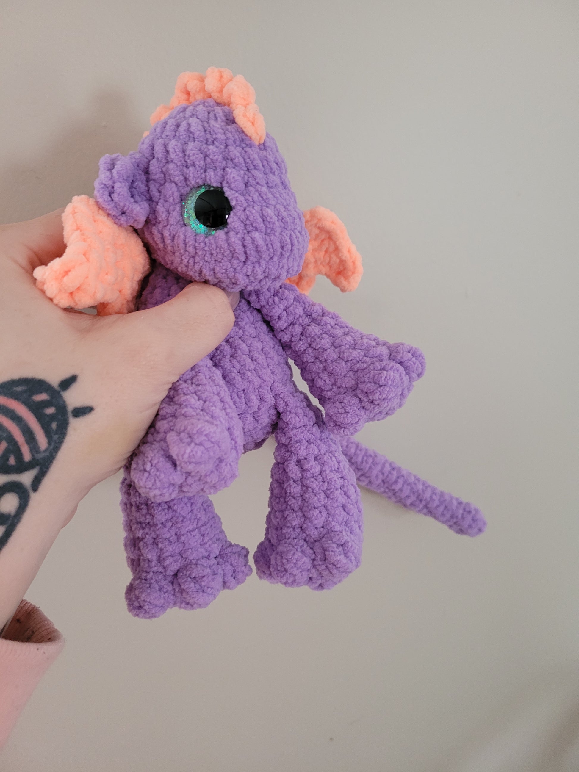 One of a kind handmade crochet baby dragon - made with soft to the touch chenille yarn - perfect cuddling companion for you or a gift for someone special.