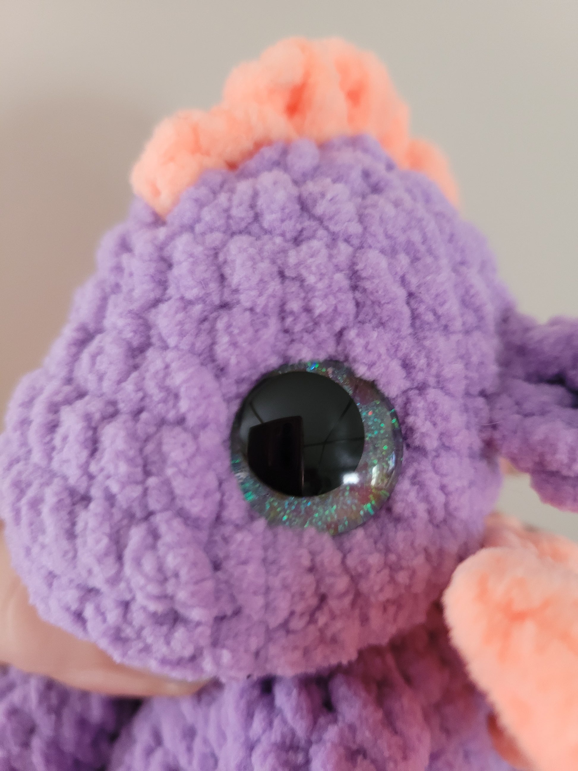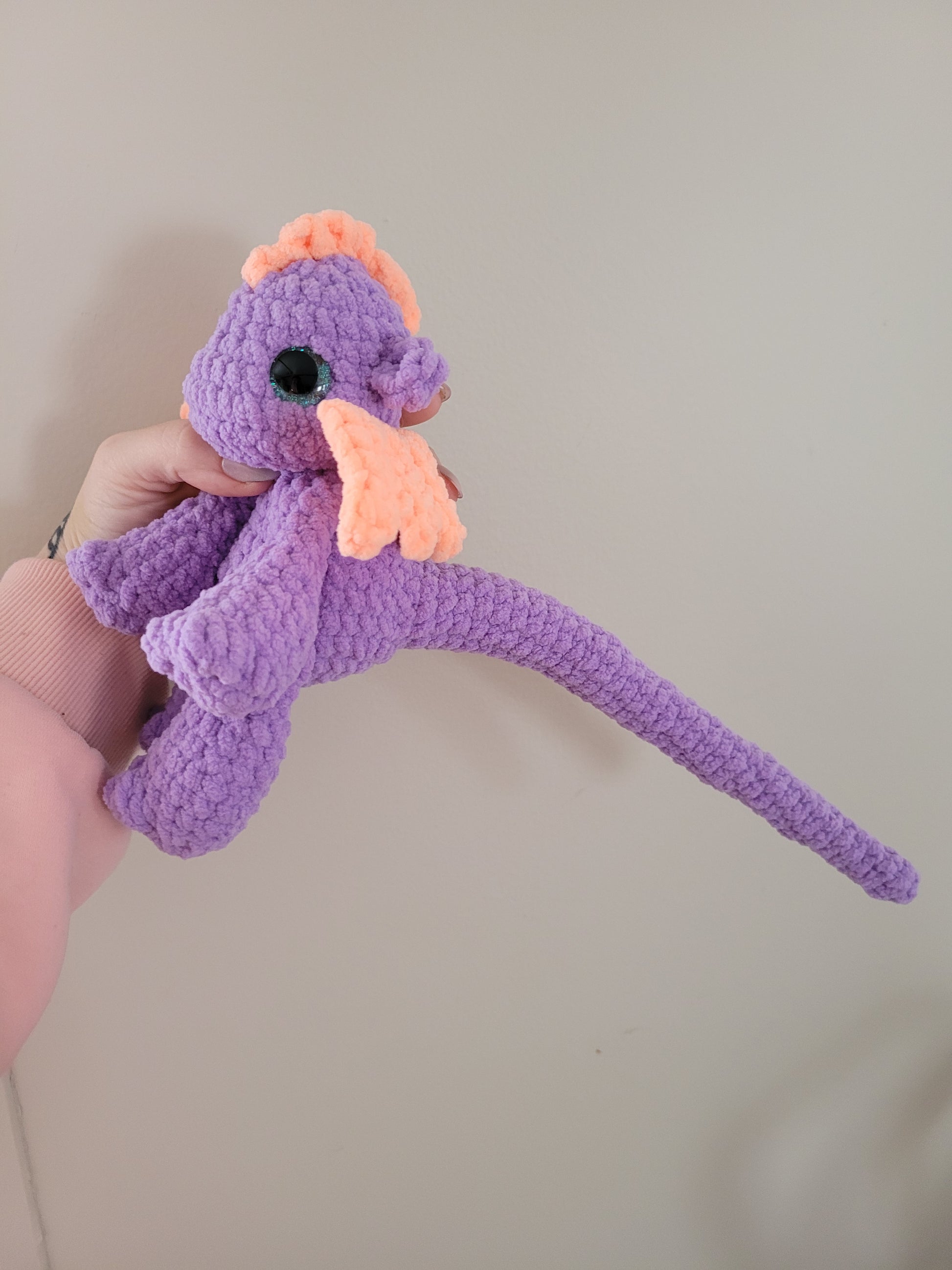 LuvKnotz Medium Purple Coral Dragon Handmade Crochet - Soft Chenille Yarn, Approx. 20" Long, Silver Glitter Eyes, OOAK stuffed animals
