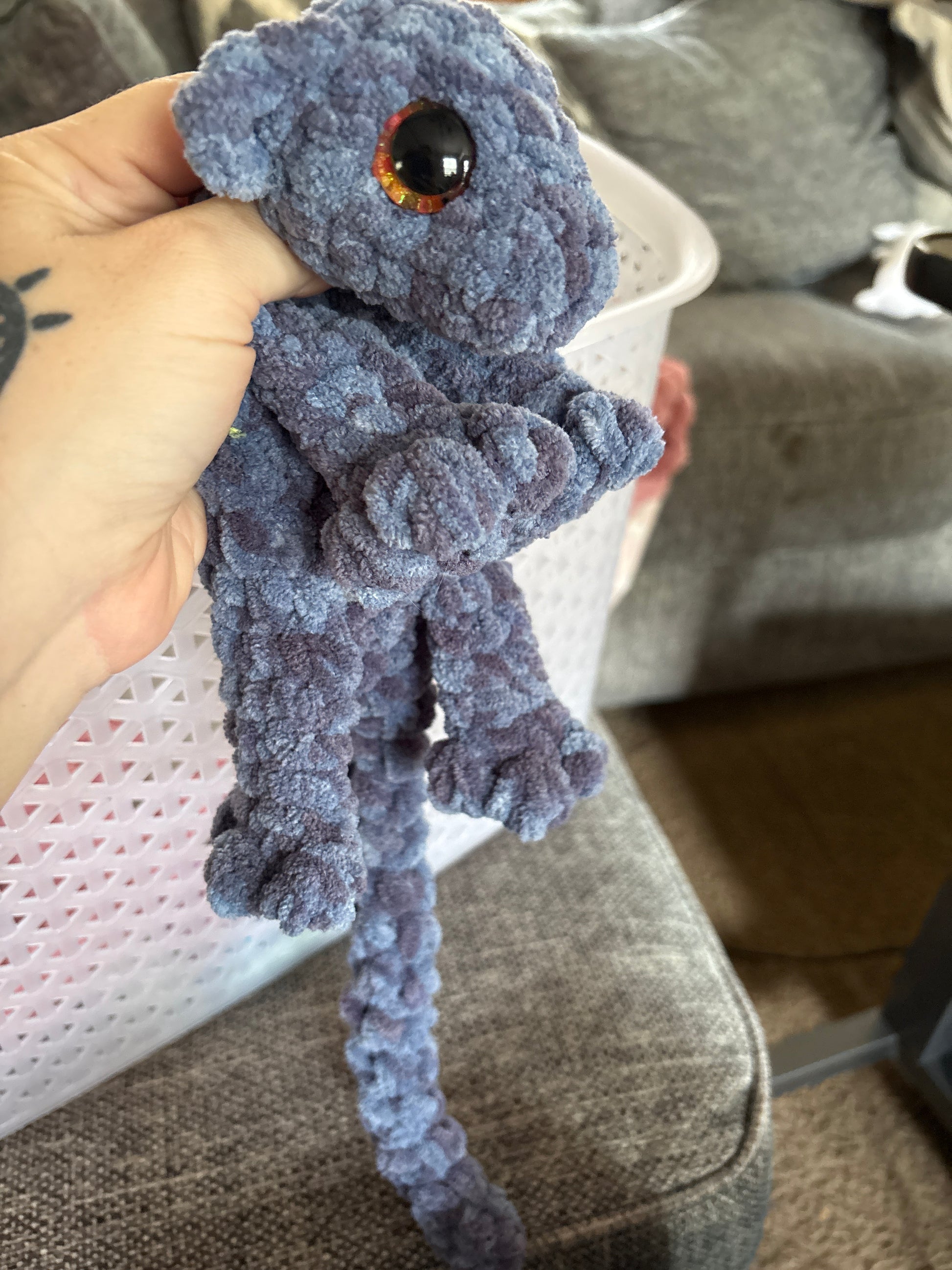 One of a kind handmade crochet baby dragon - made with soft to the touch chenille yarn - perfect cuddling companion for you or a gift for someone special.