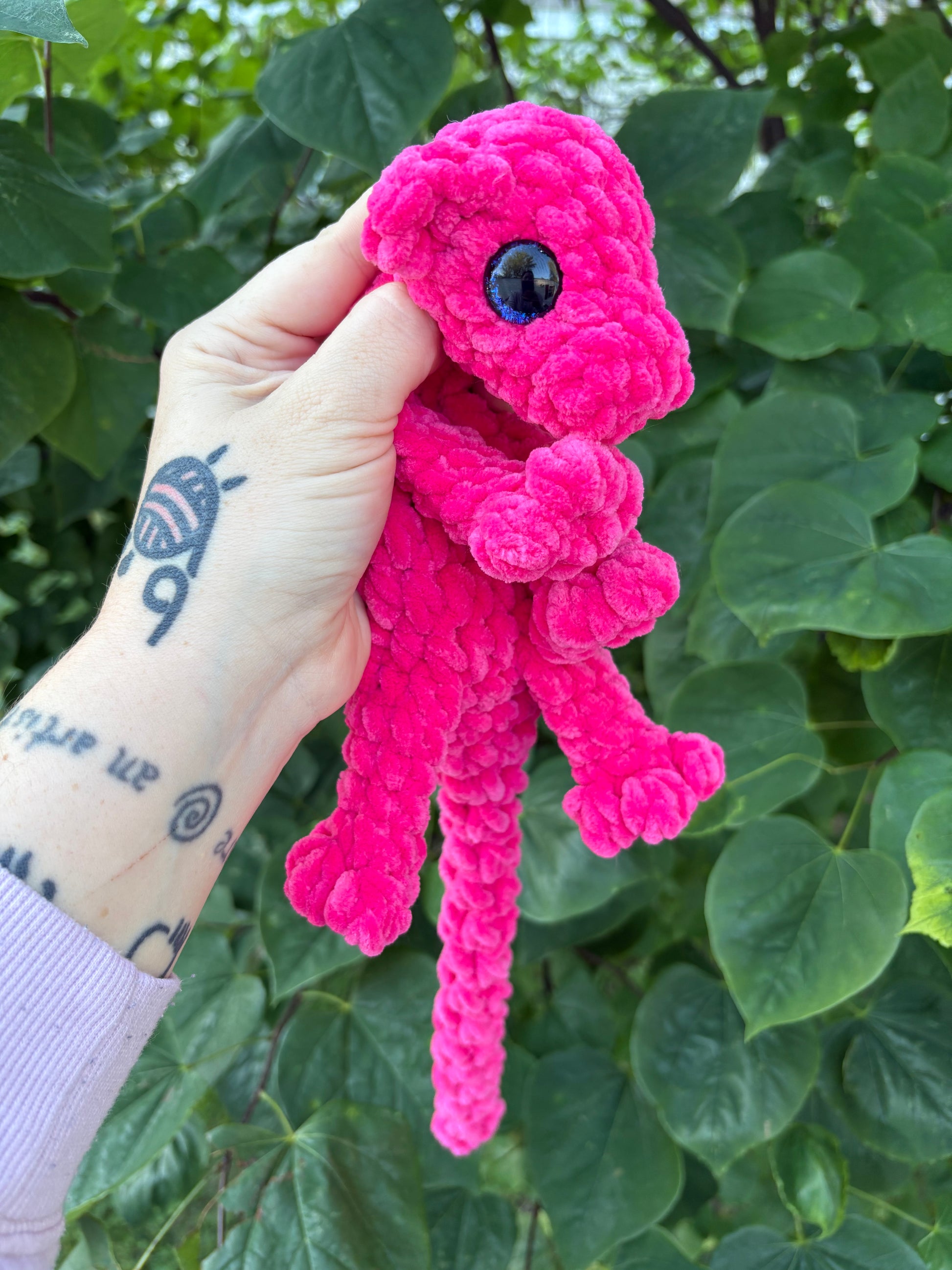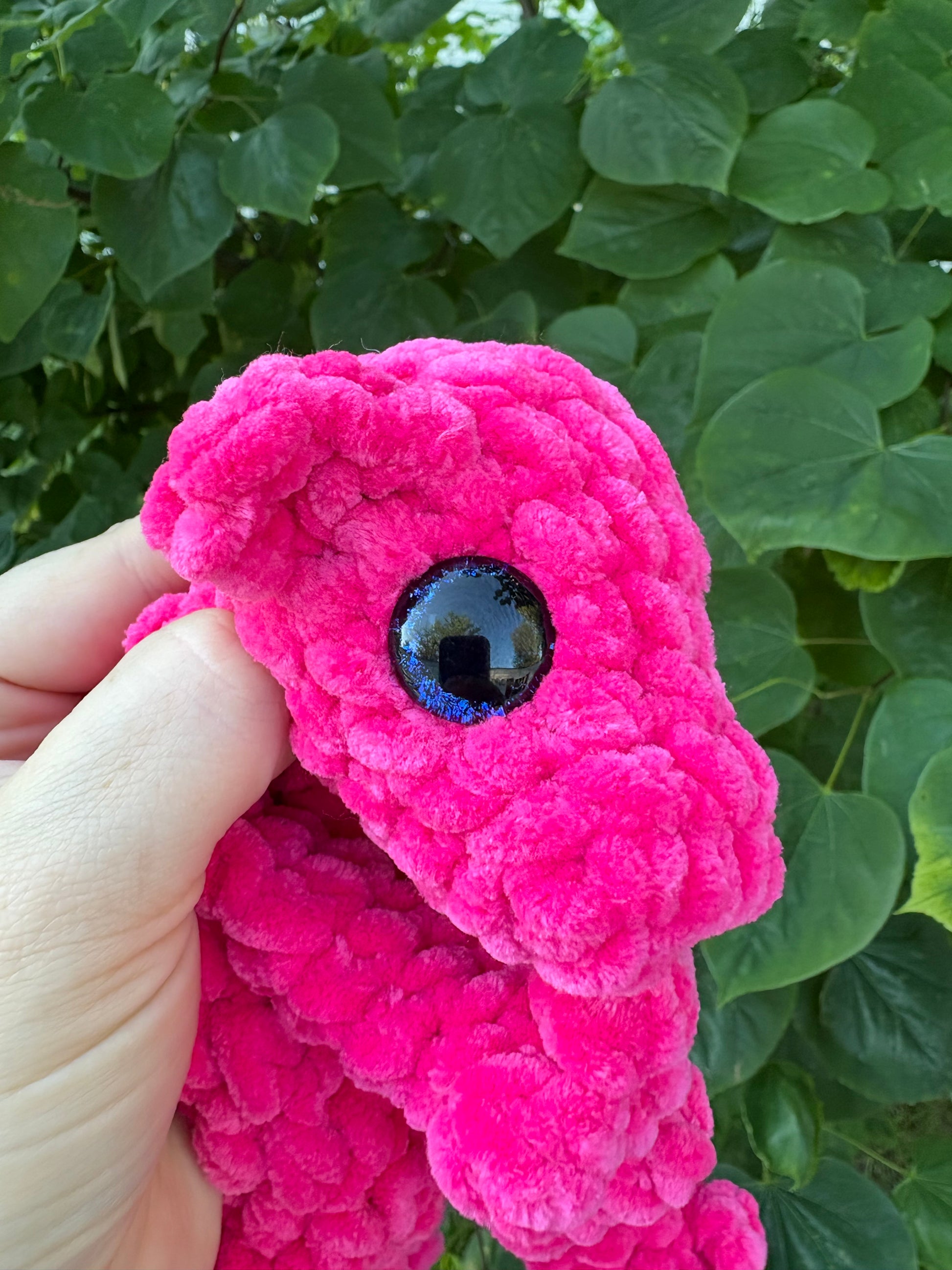 LuvKnotz Small Hot Pink Baby Dragon Handmade Crochet - Soft Chenille Yarn, Approx. 14" Long, Black Purple Eyes, OOAK stuffed animals