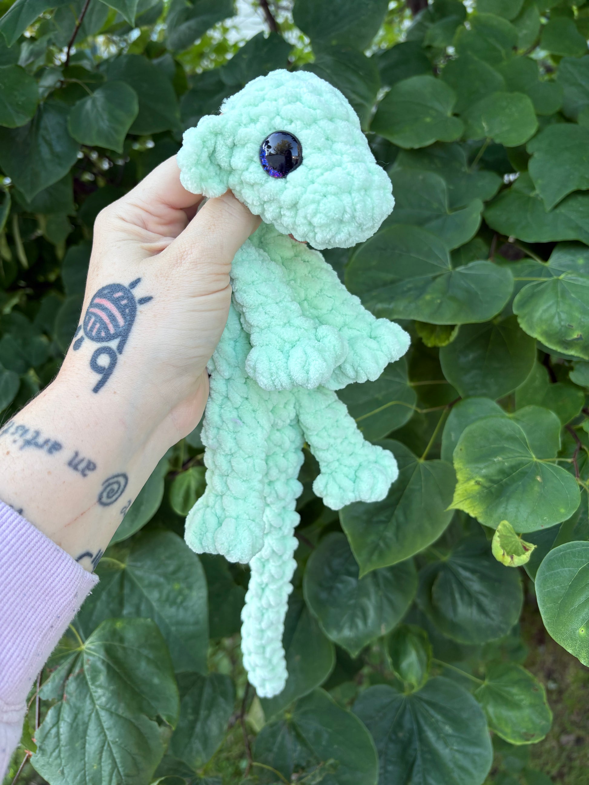 One of a kind handmade crochet baby dragon - made with soft to the touch chenille yarn - perfect cuddling companion for you or a gift for someone special.