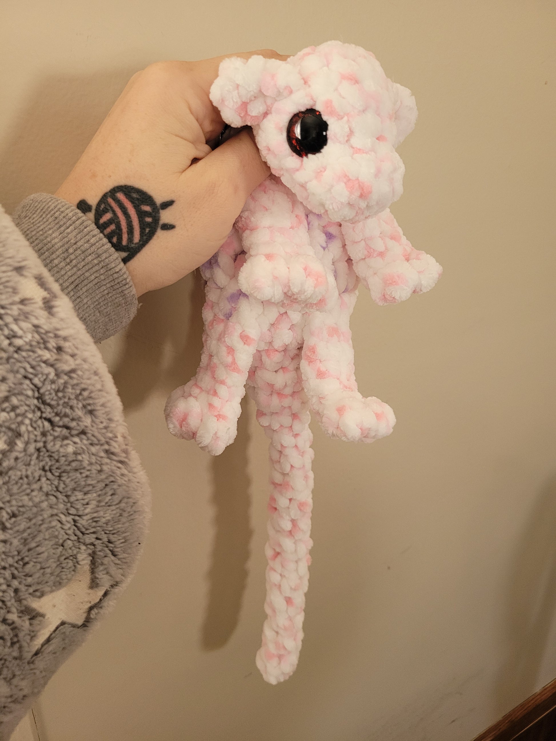 LuvKnotz Small Multi White Pink Purple Baby Dragon Handmade Crochet - Soft Chenille Yarn, Approx. 14" Long, Red Eyes, OOAK stuffed animals