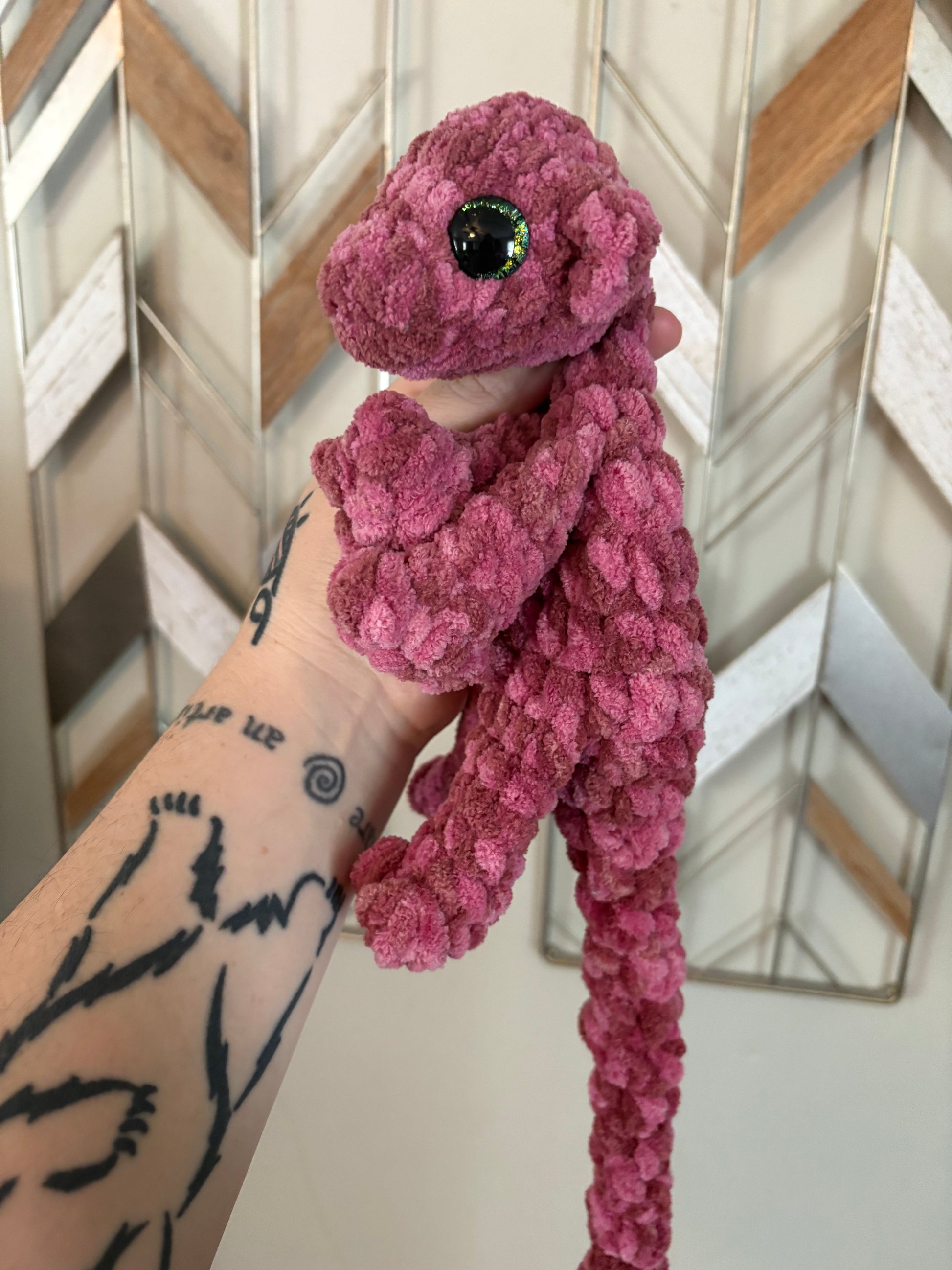 LuvKnotz Small Red Dappled Baby Dragon Handmade Crochet - Soft Chenille Yarn, Approx. 14" Long, Hand Painted Eyes, OOAK stuffed animals