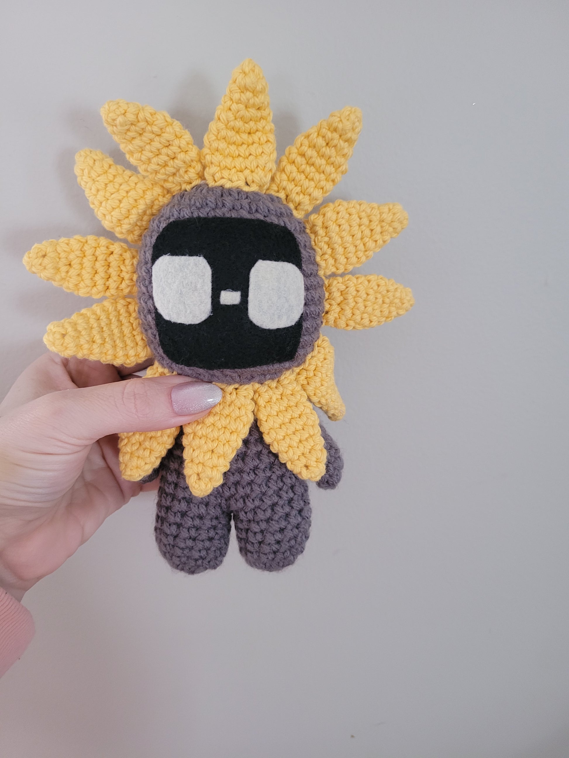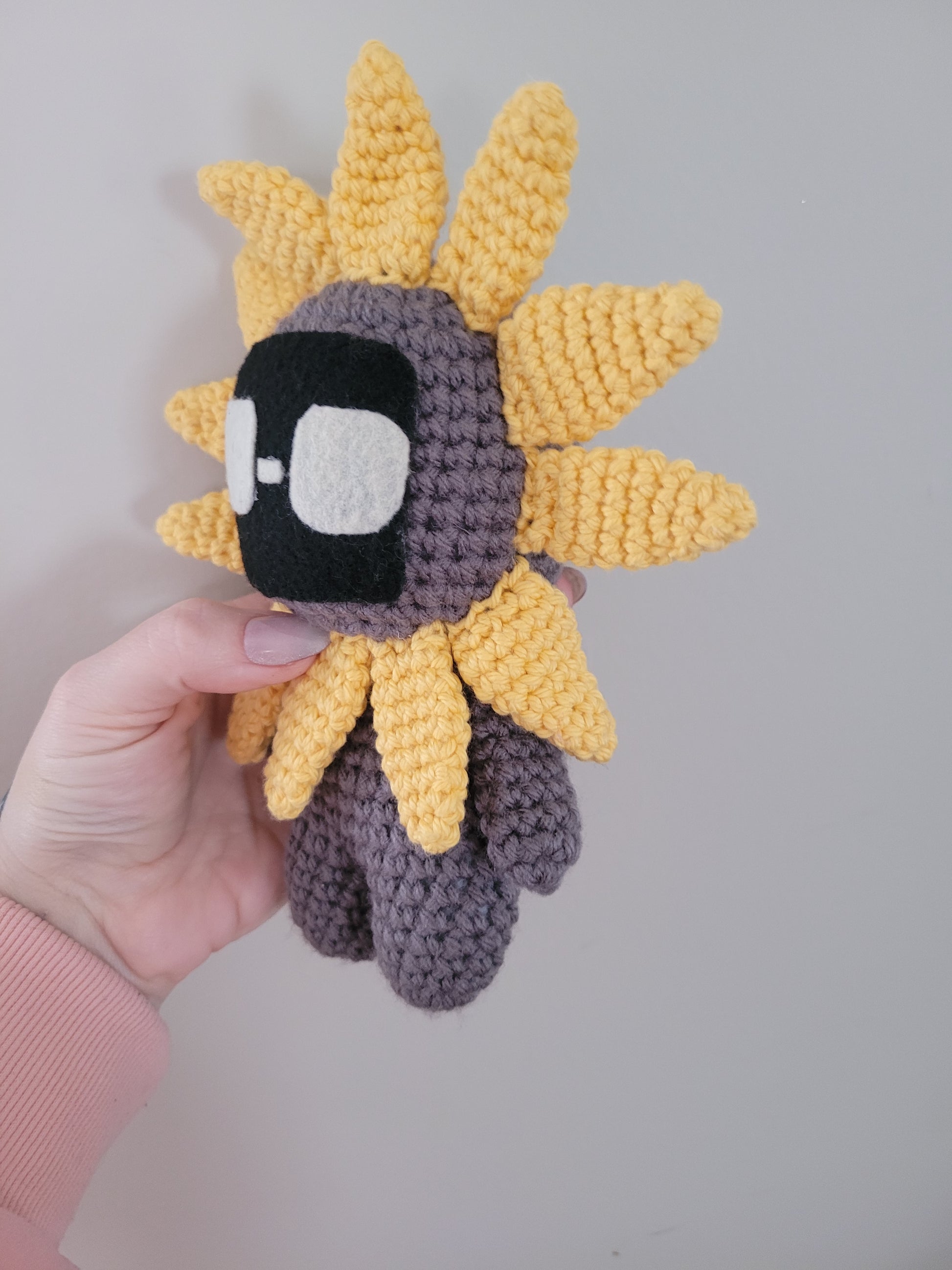LuvKnotz Small Yellow SunFlower Creature Handmade Crochet - Soft Chenille Yarn, Approx. 8" tall, OOAK stuffed animals