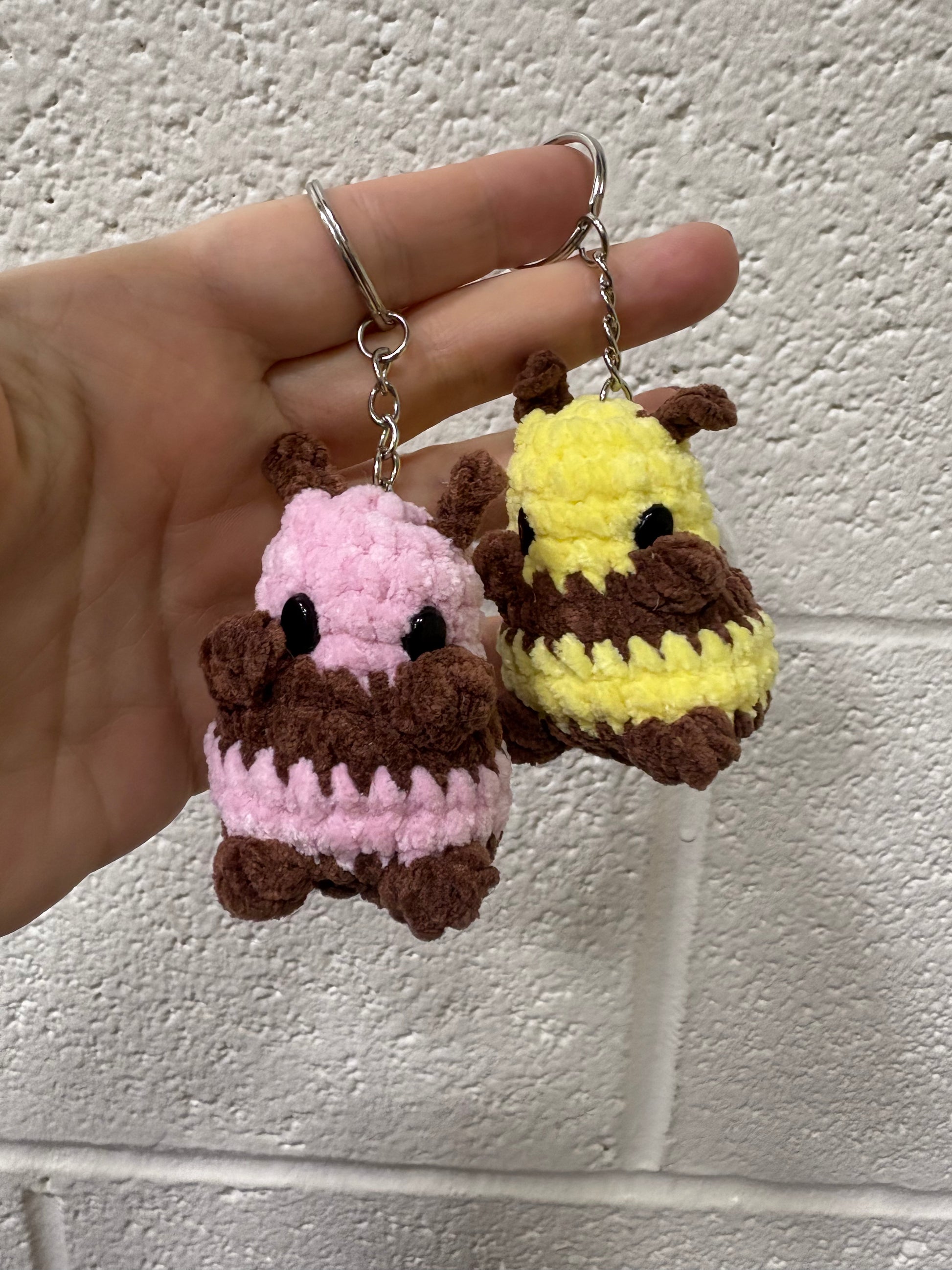 LuvKnotz Tiny Bee Keychain Handmade Crochet - Soft Chenille Yarn, Approx. 2" Long, OOAK stuffed animals