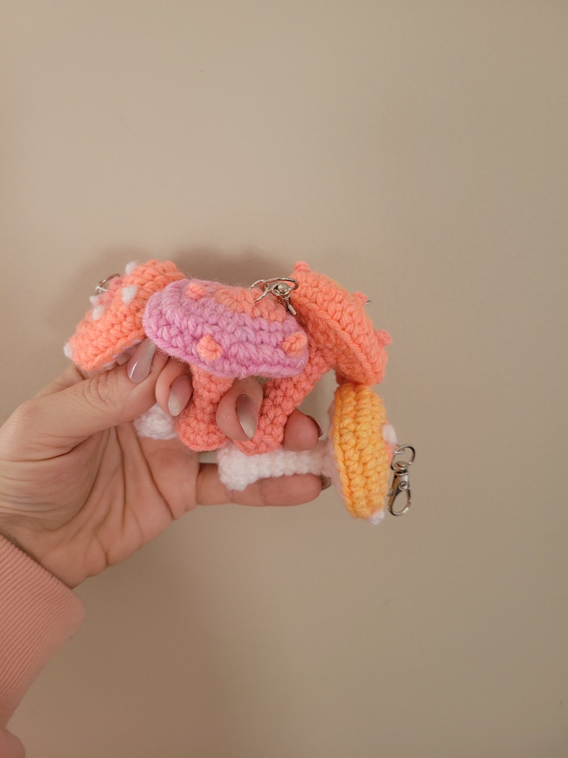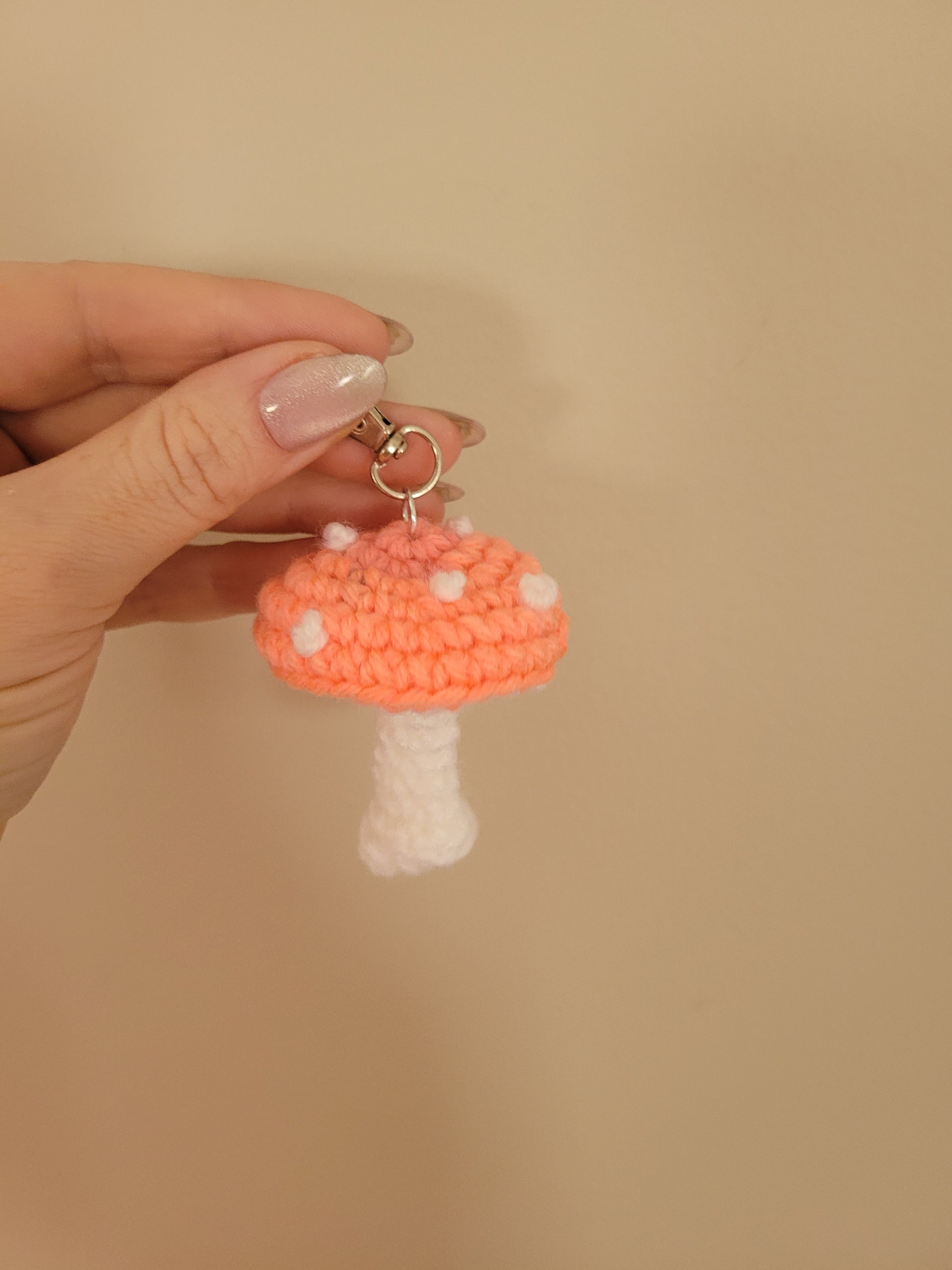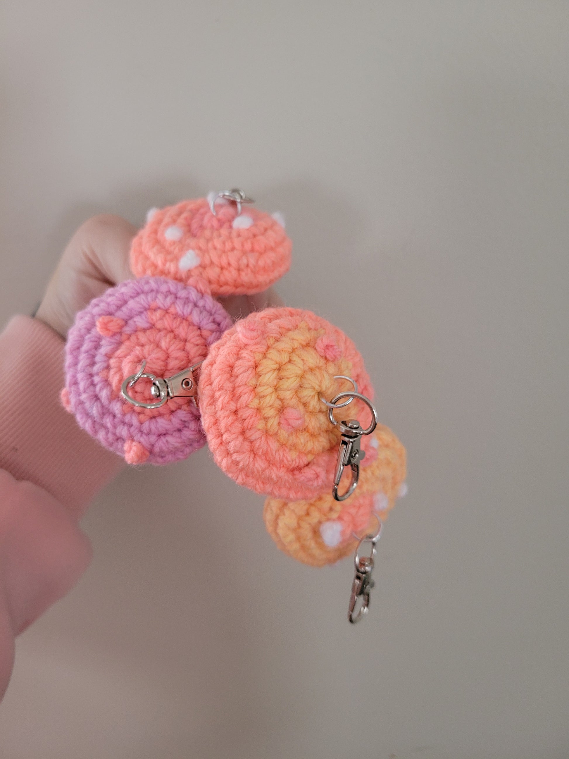 LuvKnotz Tiny Orange Yellow Pink Purple Keychain Mushroom Handmade Crochet - Soft Acrylic Yarn, Approx. 3" Long, OOAK stuffed animals