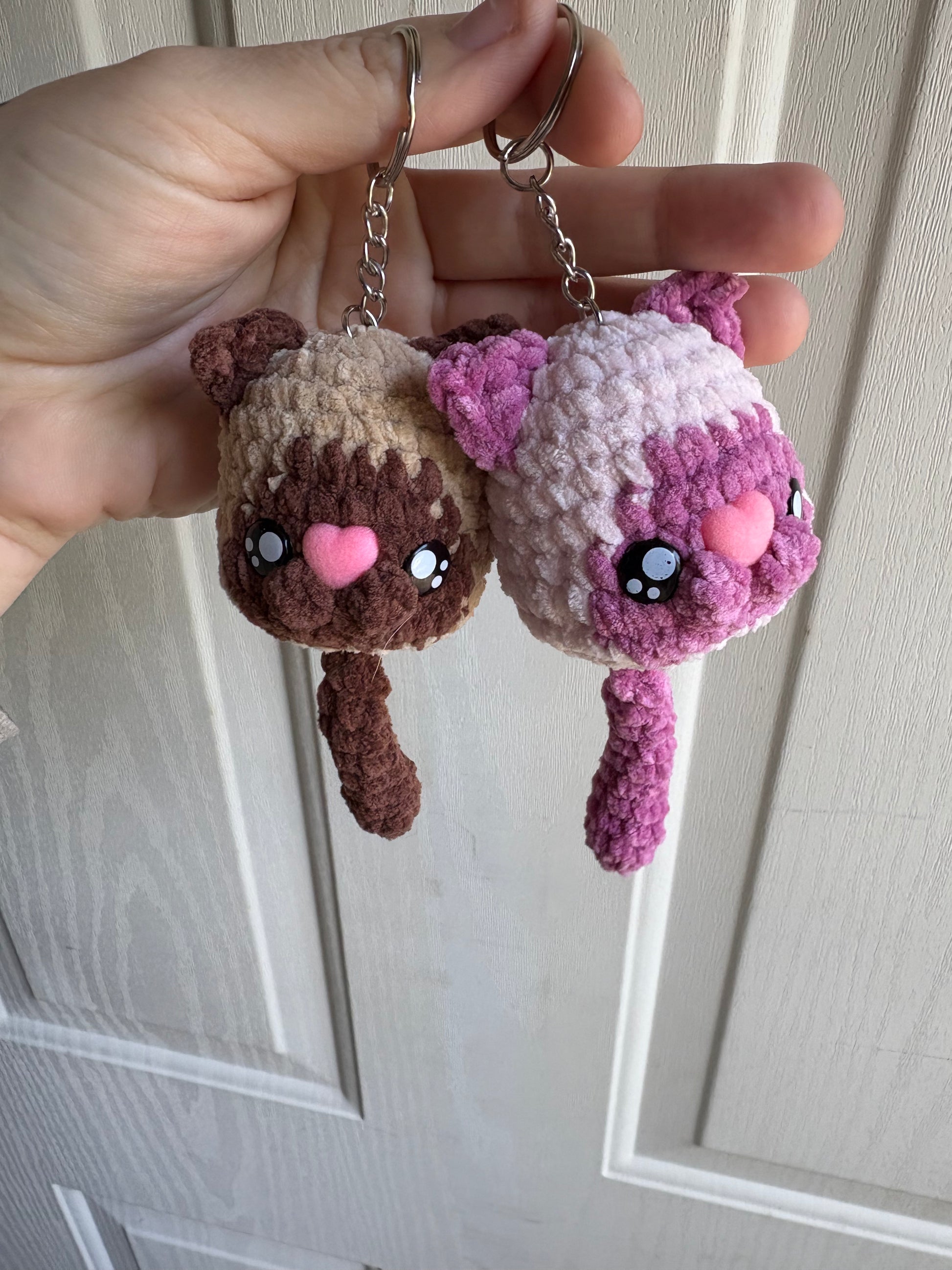 LuvKnotz Tiny Cat Tail Keychain Handmade Crochet - Soft Acrylic Yarn, Approx. 3” Long, OOAK stuffed animals