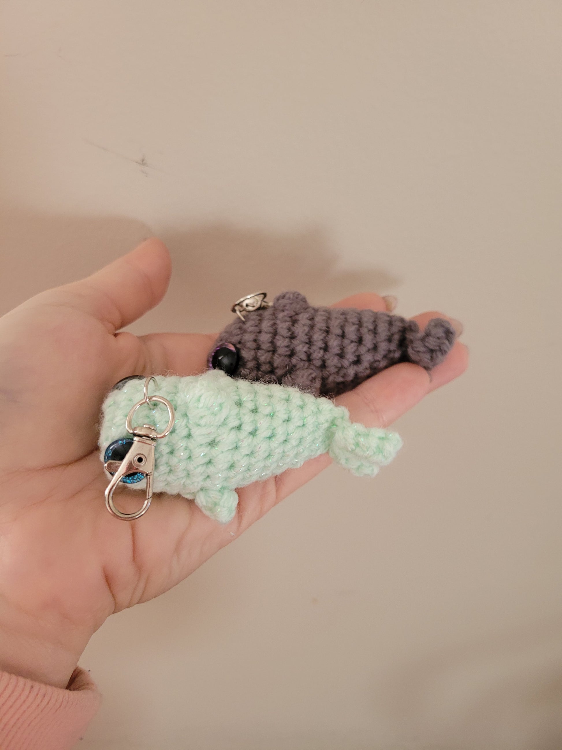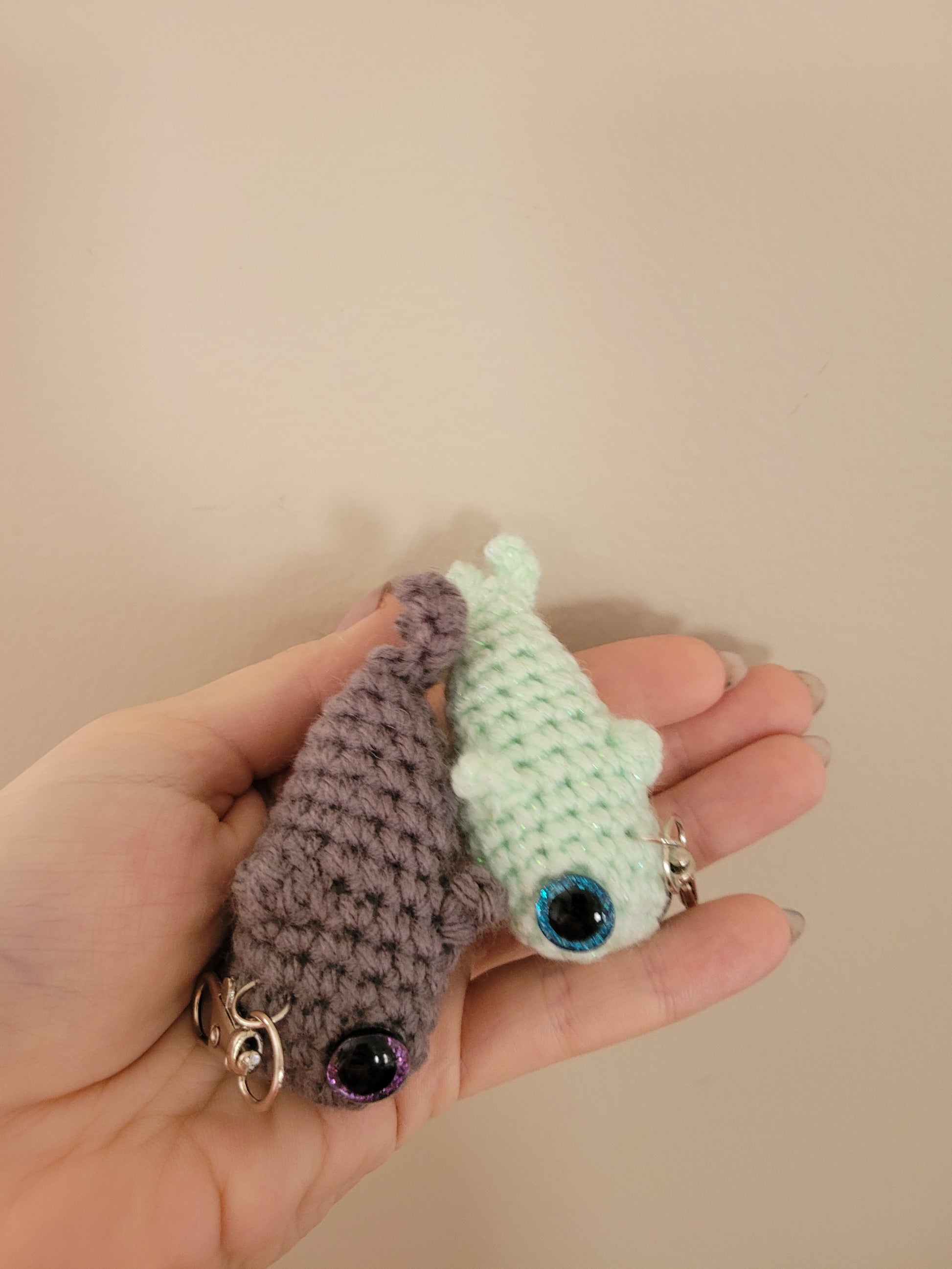 LuvKnotz Tiny Gray Aqua Keychain Shark Handmade Crochet - Soft Acrylic Yarn, Approx. 3" Long, OOAK stuffed animals