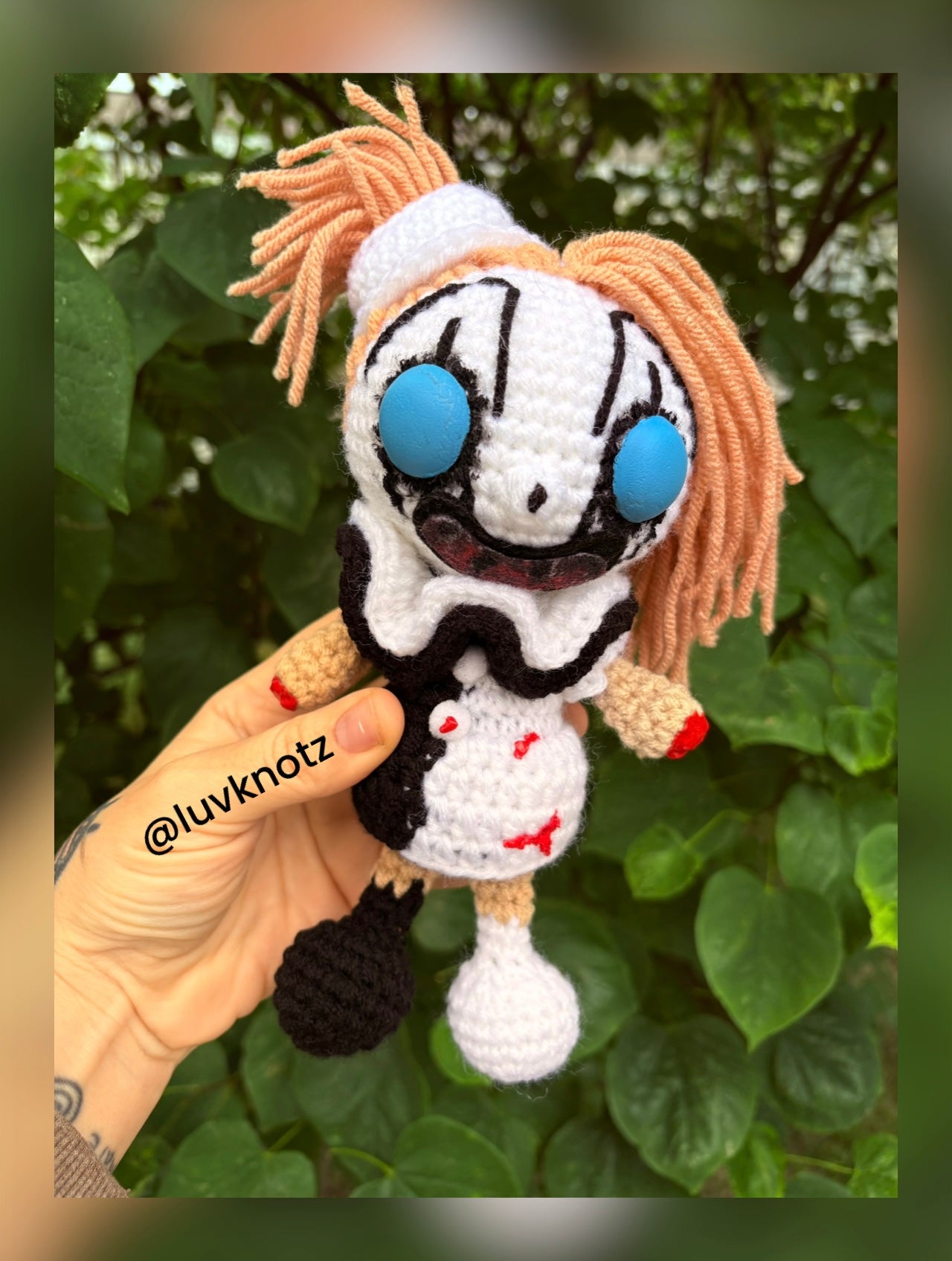 Medium Female Terrifier Doll - Art the Clown Inspired Character - Unique Design for Stuffed Animal - approx 8”