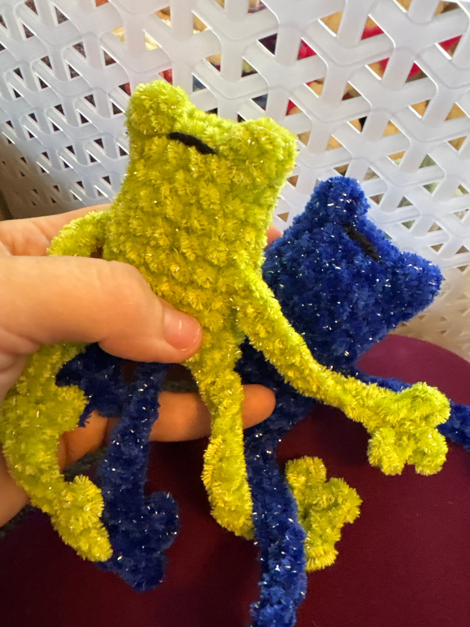 One of a kind handmade crochet frog - made with soft to the touch chenille yarn