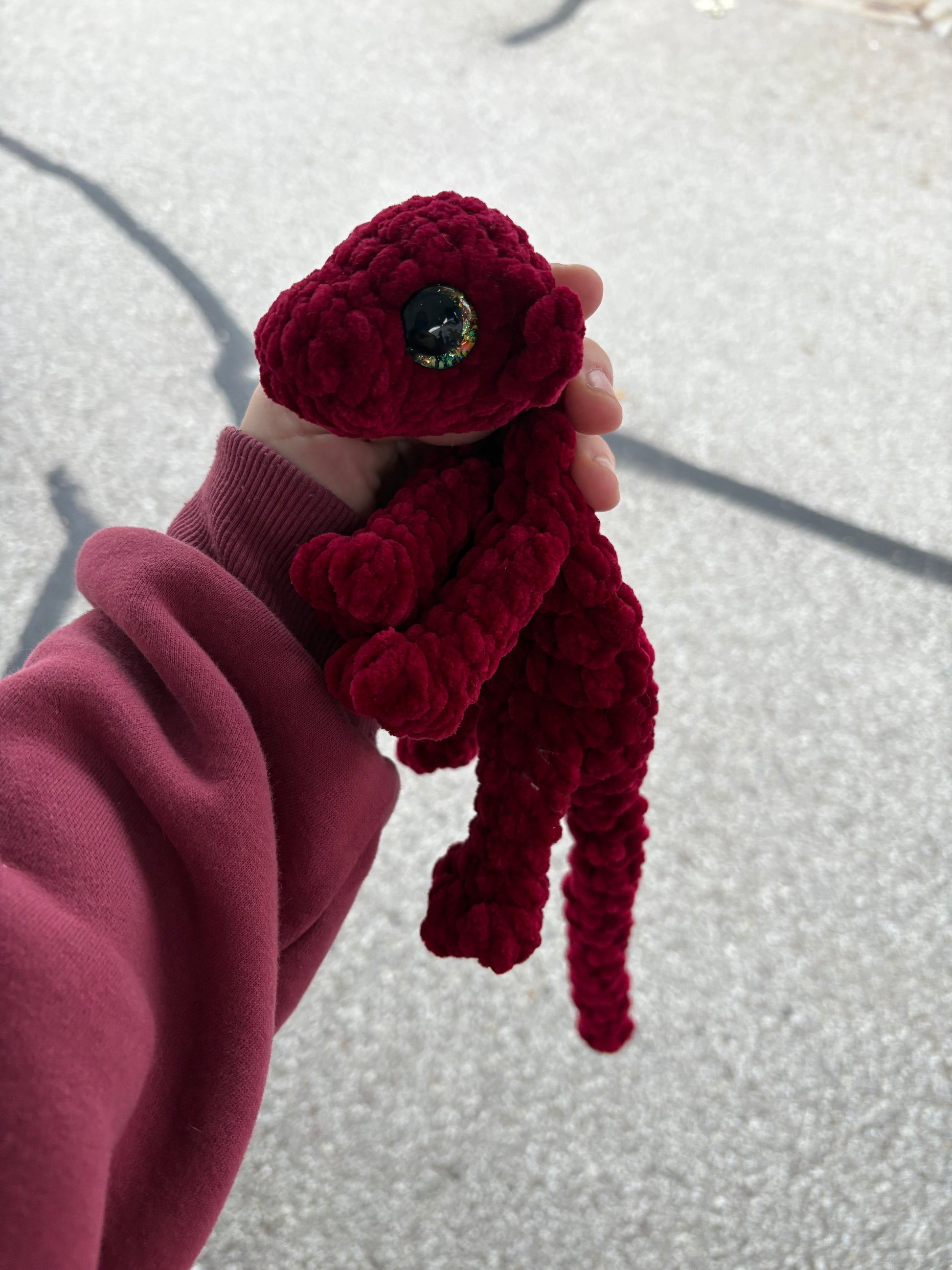 Red - LuvKnotz Baby Dragon Handmade Crochet - Soft Chenille Yarn, Approx. 14" Long, Hand Painted Eyes, OOAK stuffed animals